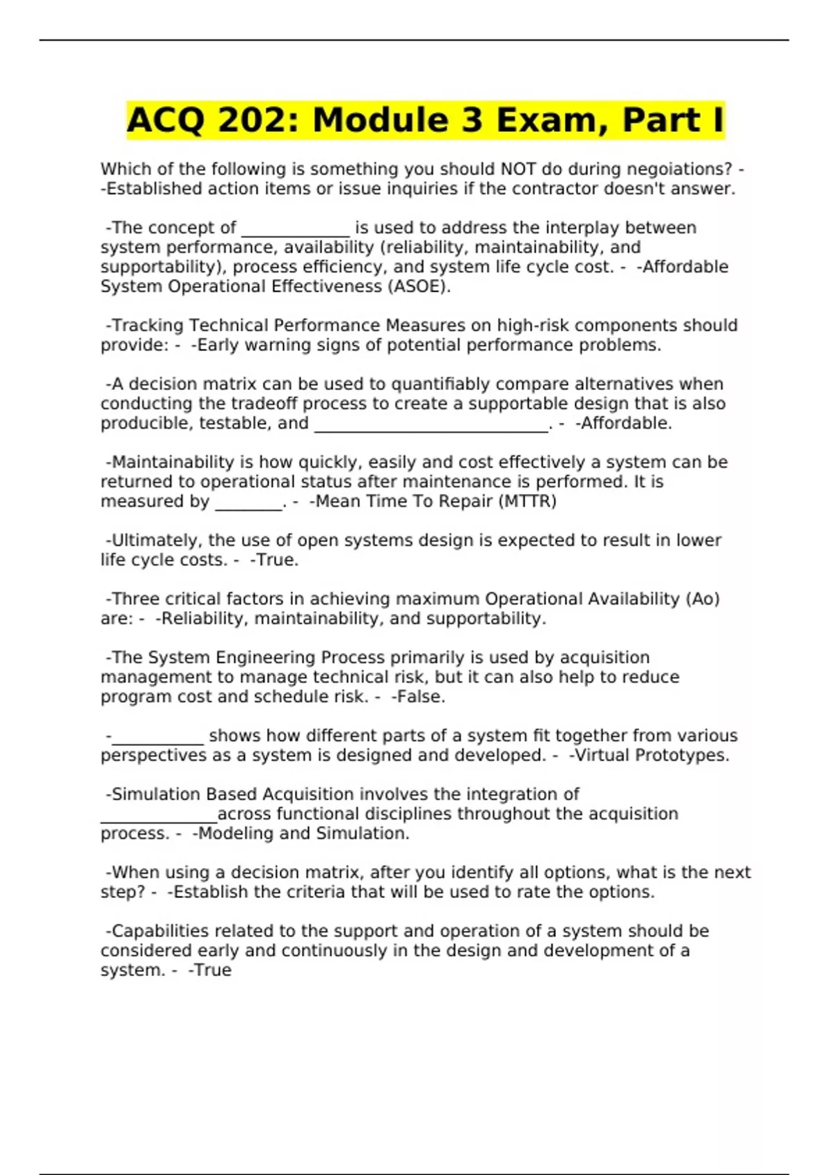 acq 202 module 3 exam part i