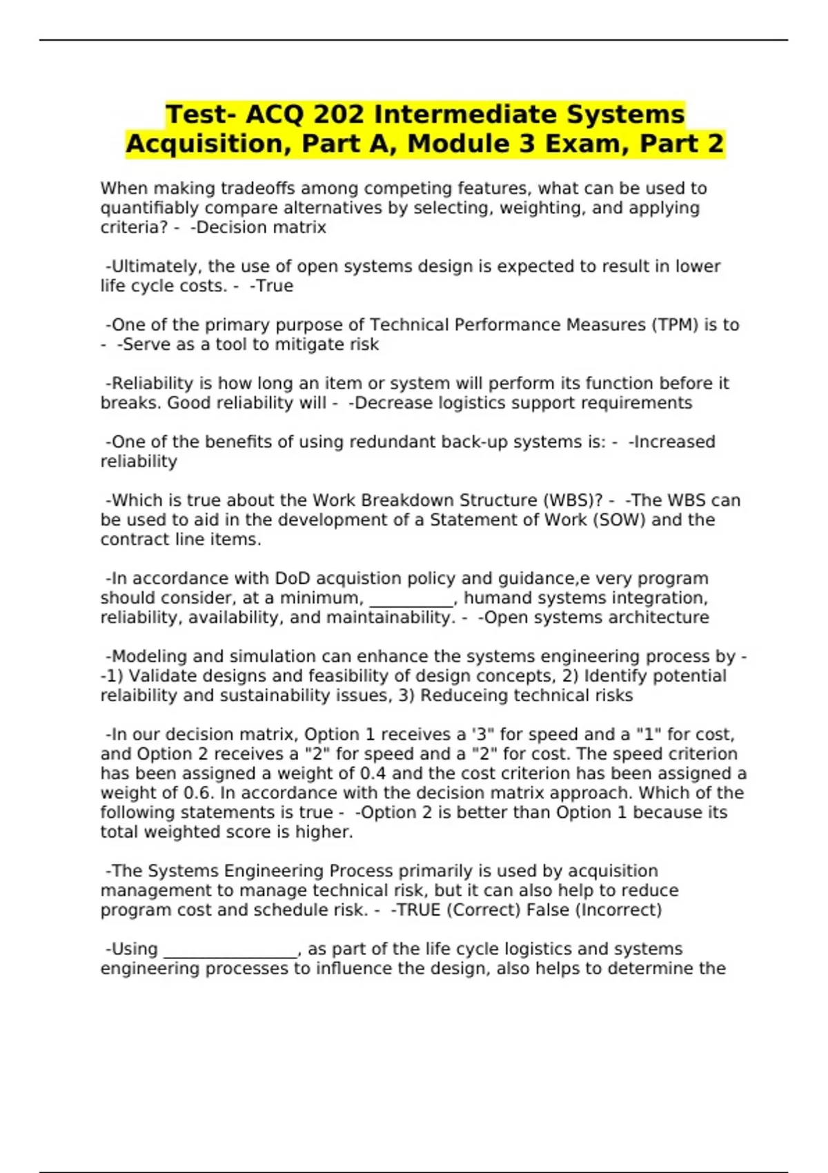 Test- ACQ 202 Intermediate Systems Acquisition, Part A, Module 3 Exam, Part 2