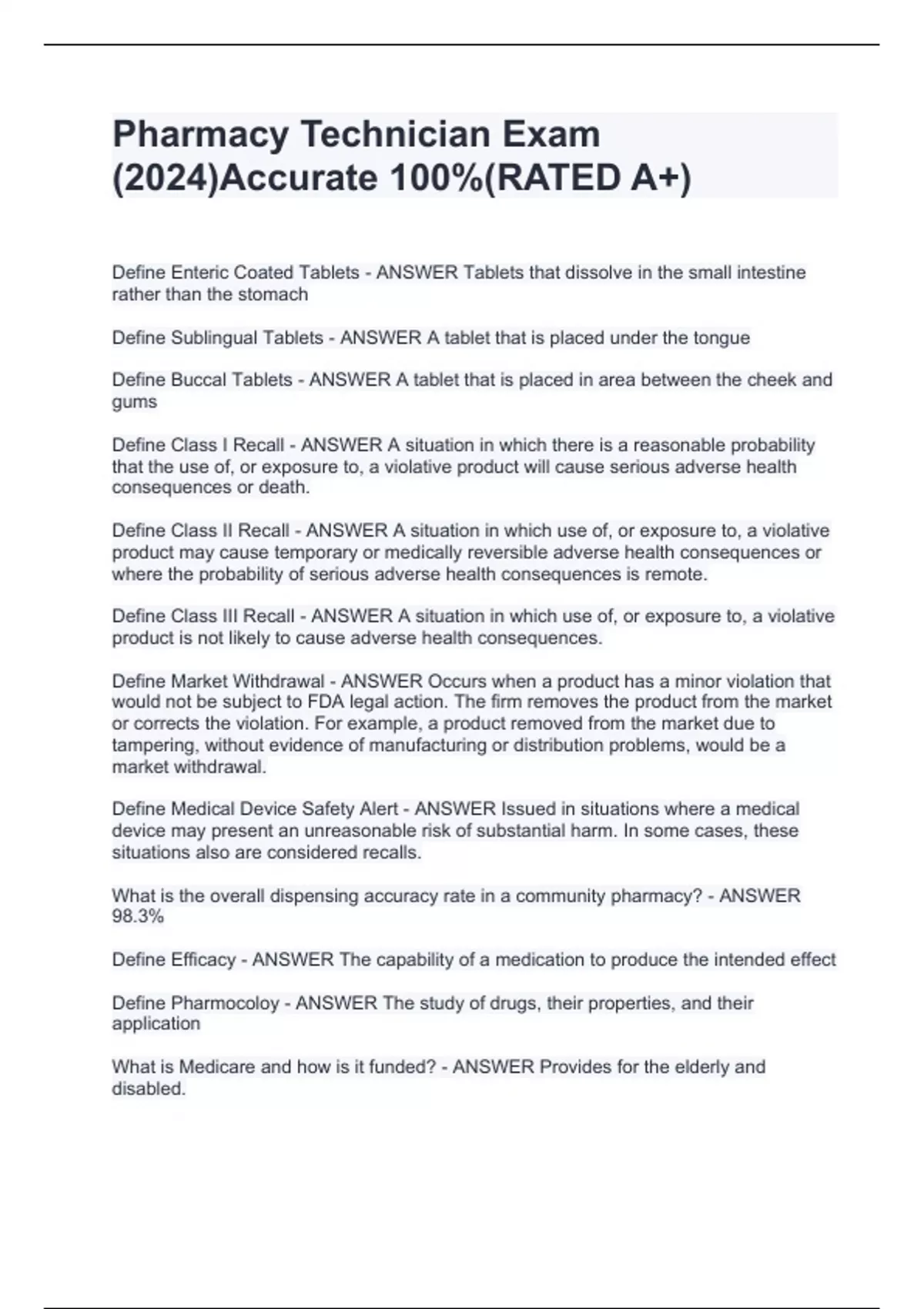 Pharmacy Technician Exam (2024)Accurate 100%(RATED A+)
