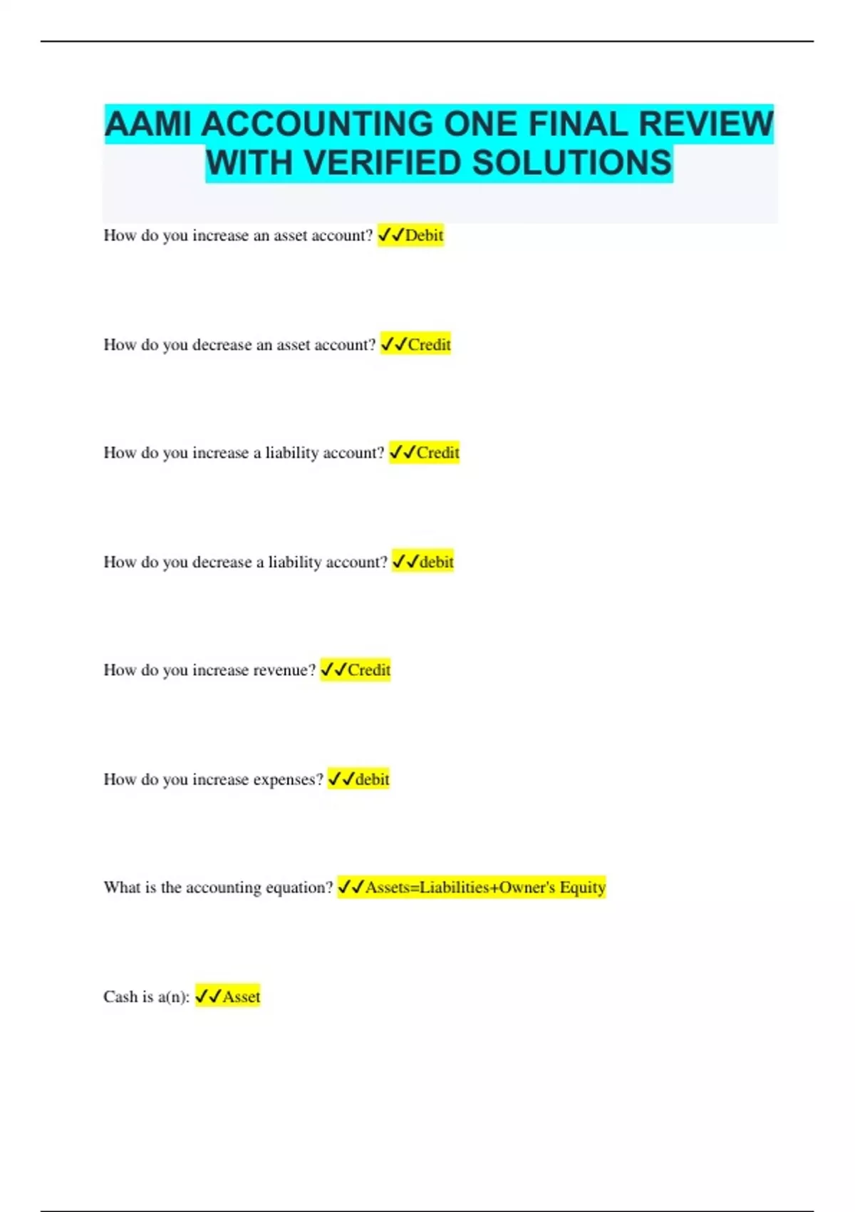 AAMI ACCOUNTING ONE FINAL REVIEW WITH VERIFIED SOLUTIONS