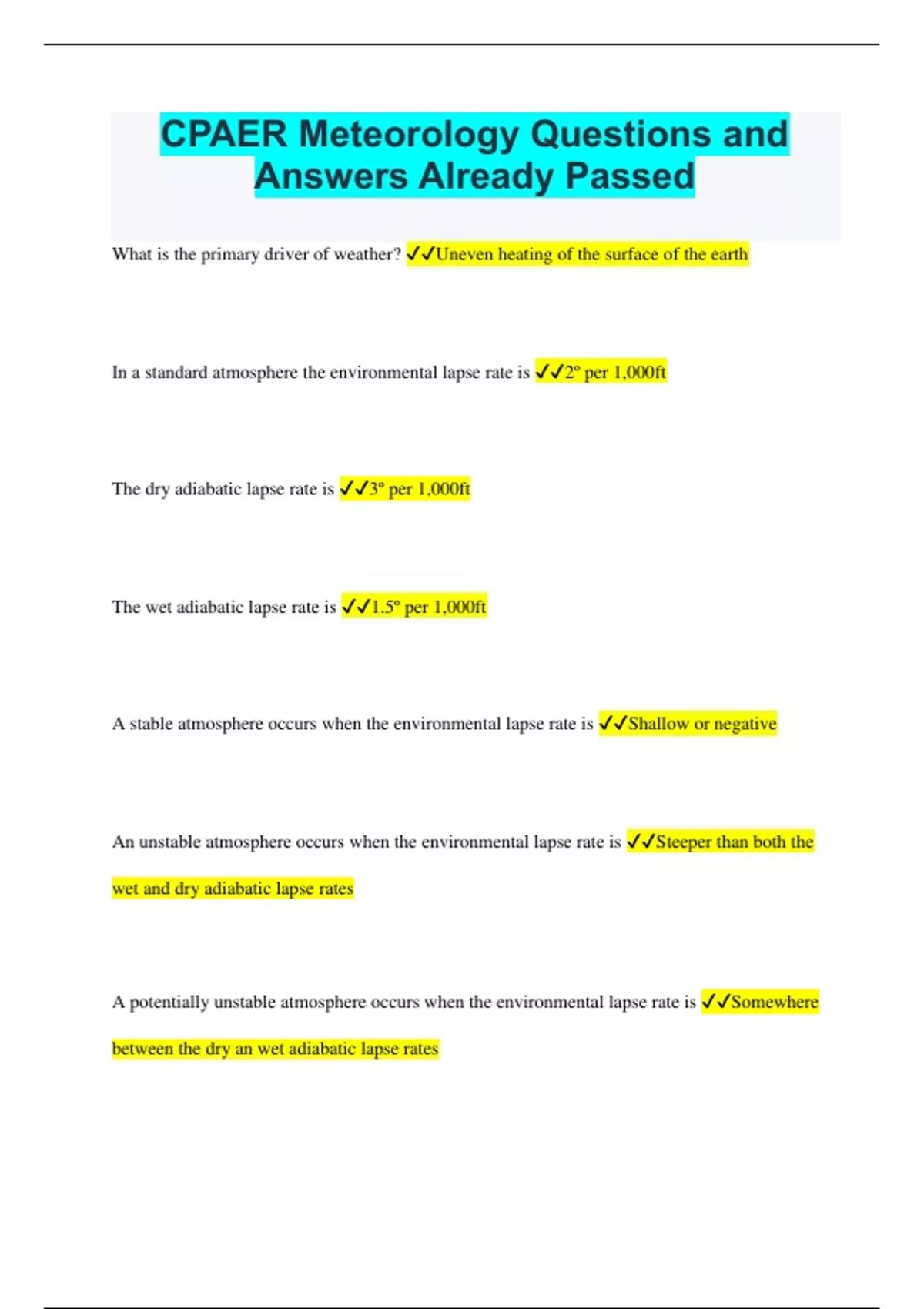 cpaer meteorology questions and answers already p