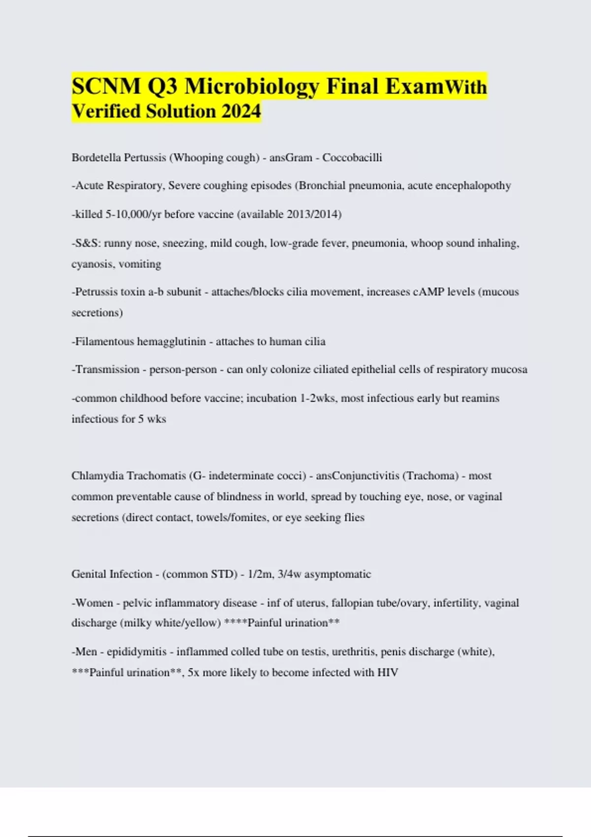 SCNM Q3 Microbiology Final ExamWith Verified Solution 2024