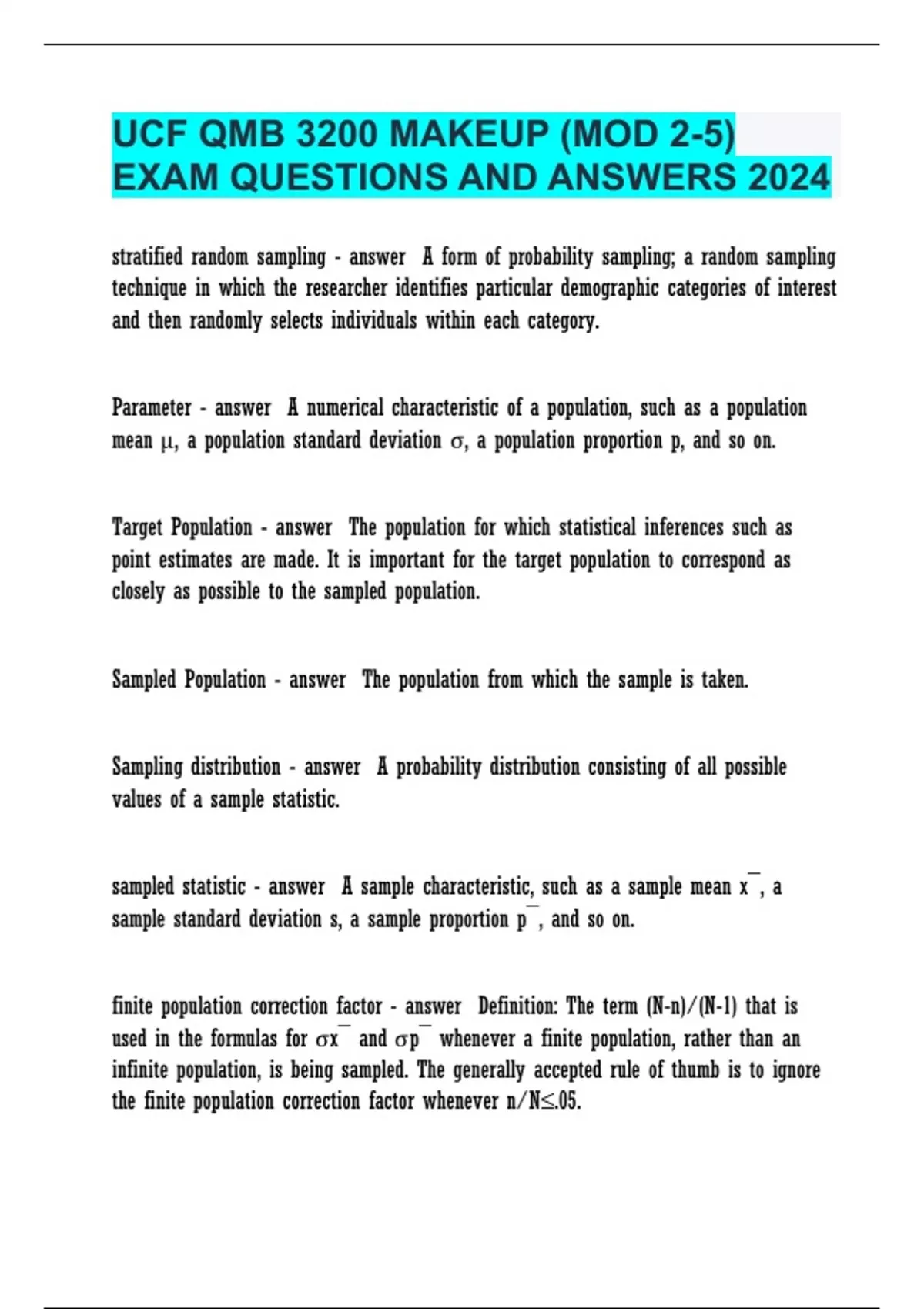 UCF QMB 3200 MAKEUP (MOD 2-5) EXAM QUESTIONS AND ANSWERS 2024.