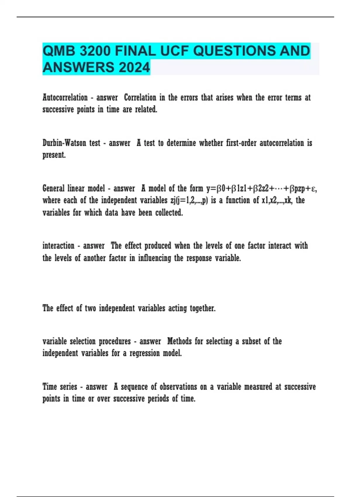 qmb 3200 final ucf questions and answers