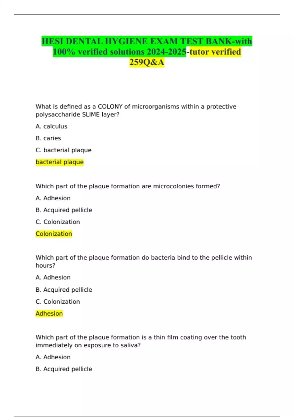 HESI DENTAL HYGIENE EXAM TEST BANK-with 100% verified solutions -tutor verified