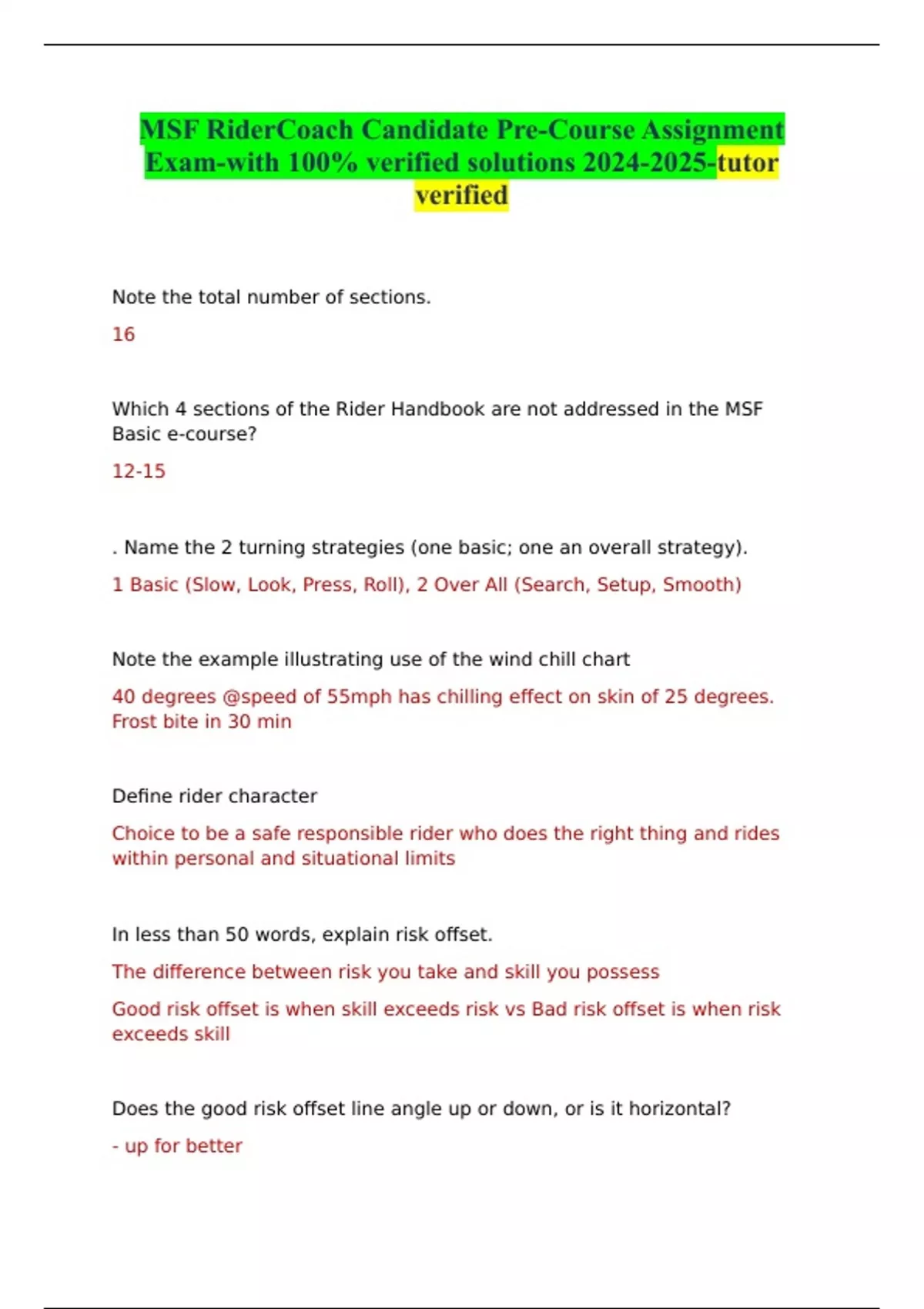 MSF RiderCoach Candidate Pre-Course Assignment Exam-with 100% verified solutions -tutor verified