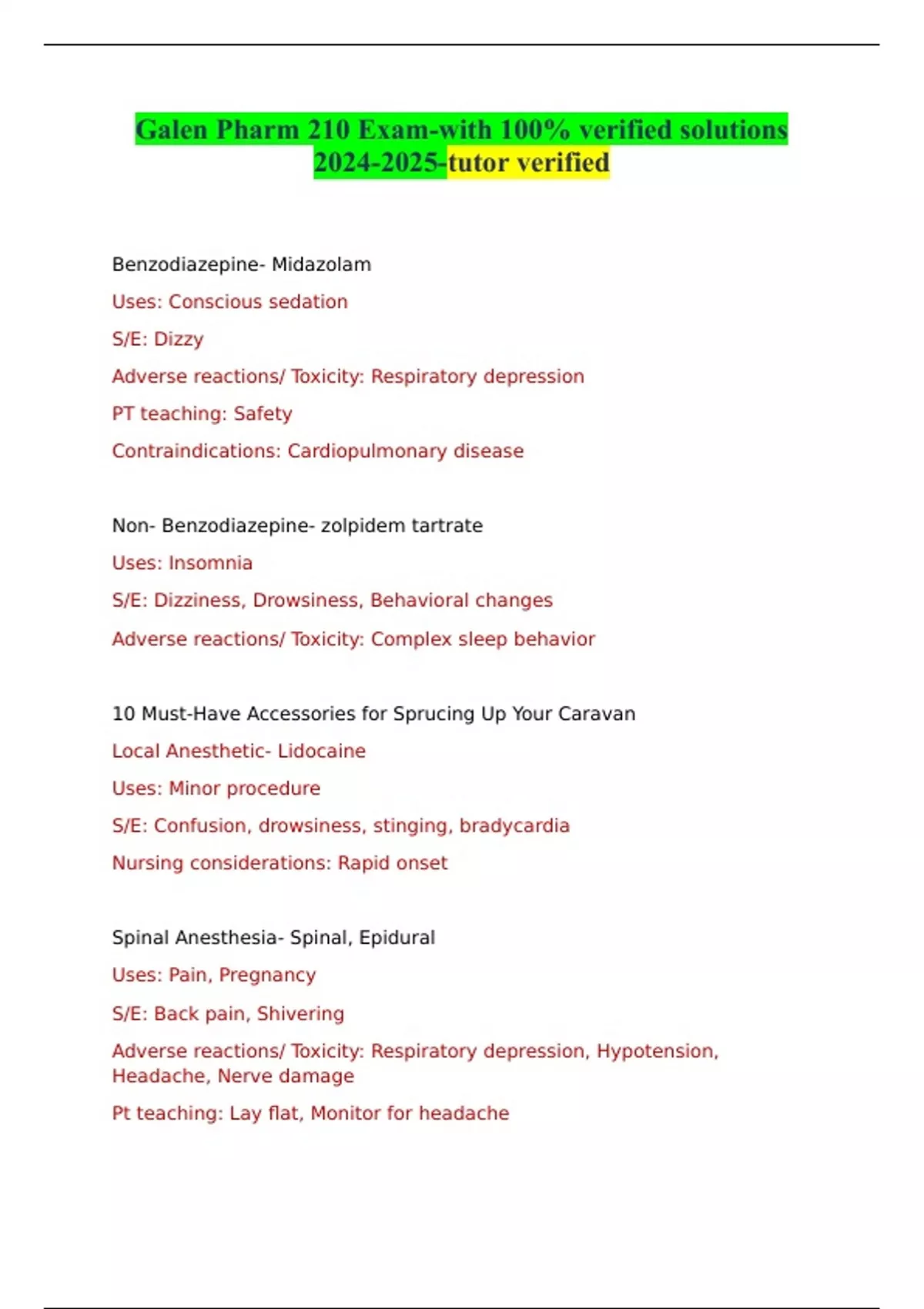 Galen Pharm 210 Exam-with 100% verified solutions -tutor verified