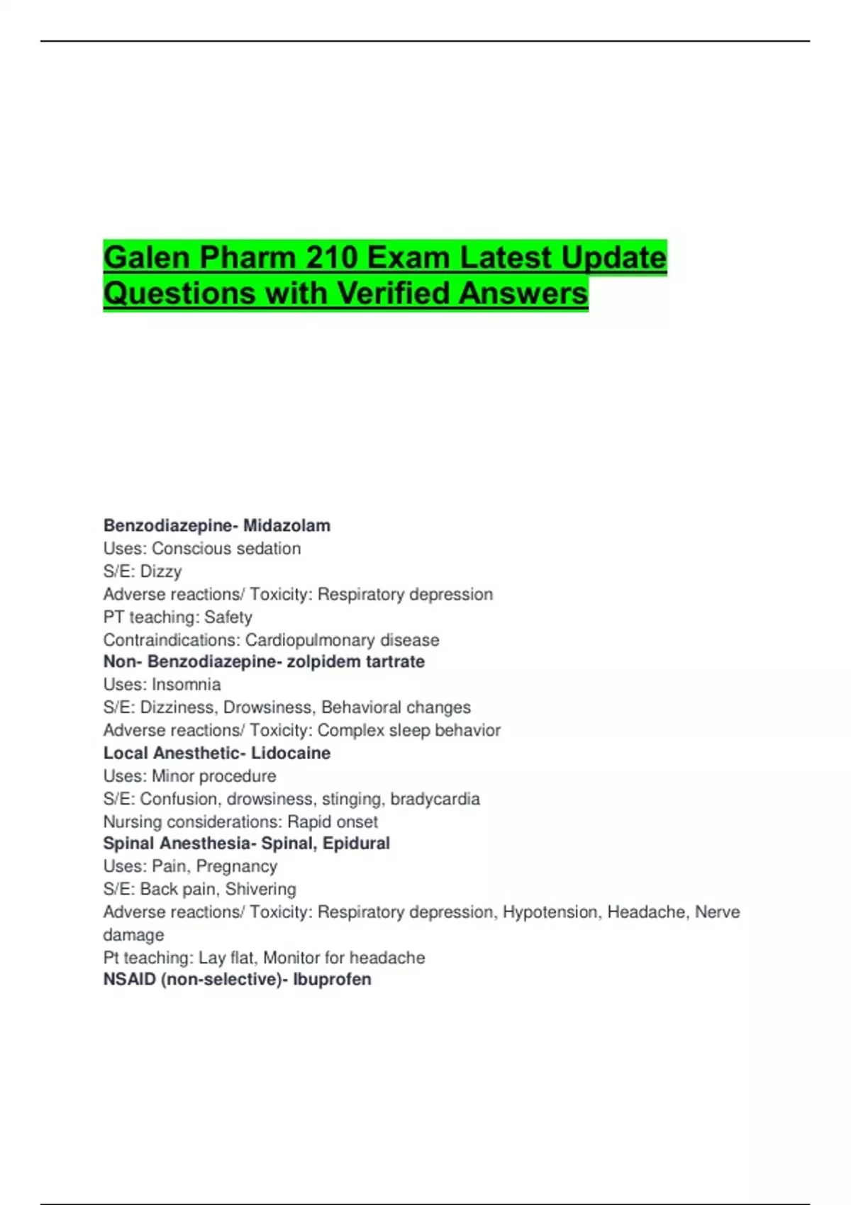 Galen Pharm 210 Exam Latest Update Questions with Verified Answers