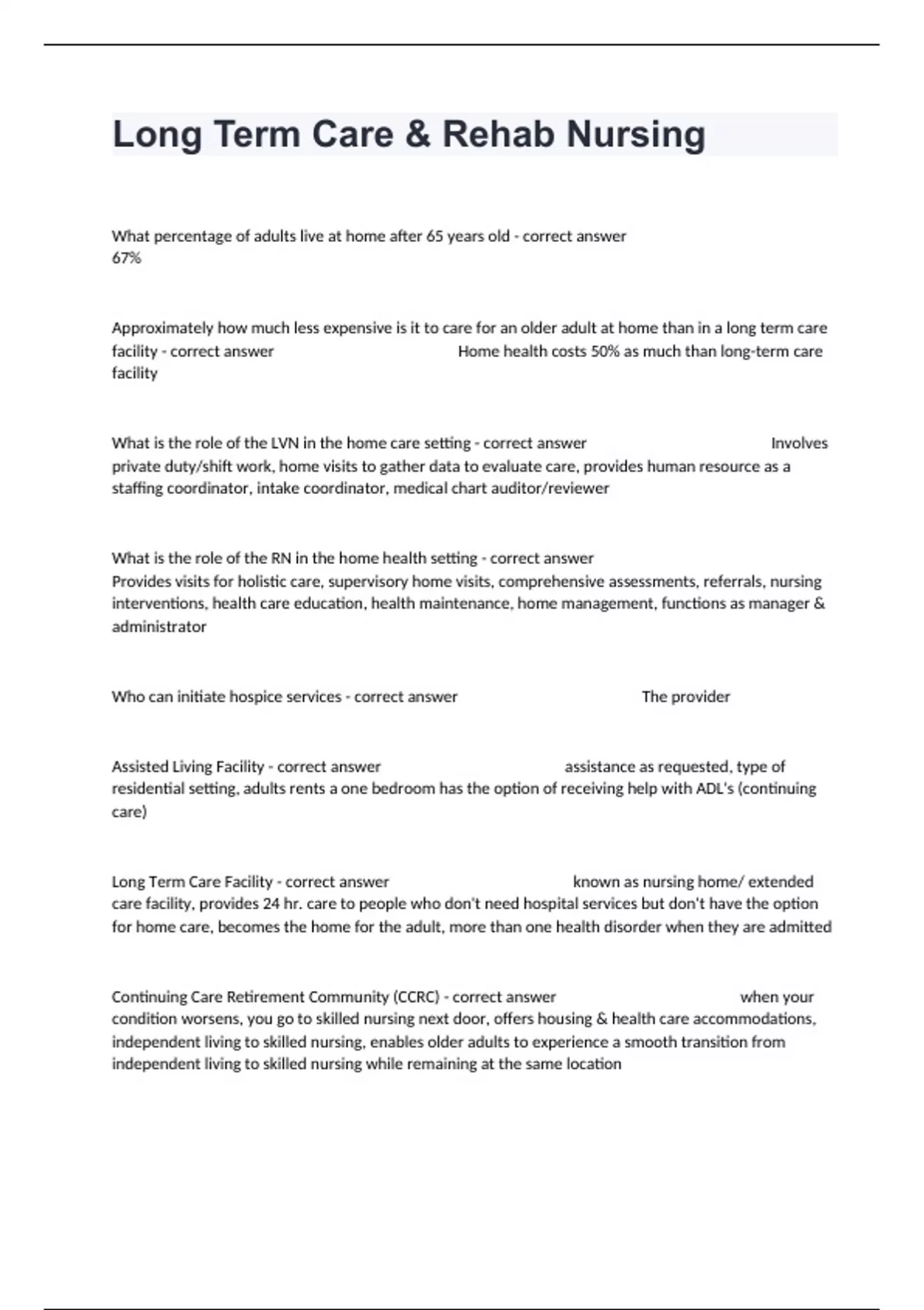 Long Term Care & Rehab Nursing Awesome Study Guide With Complete Answers.