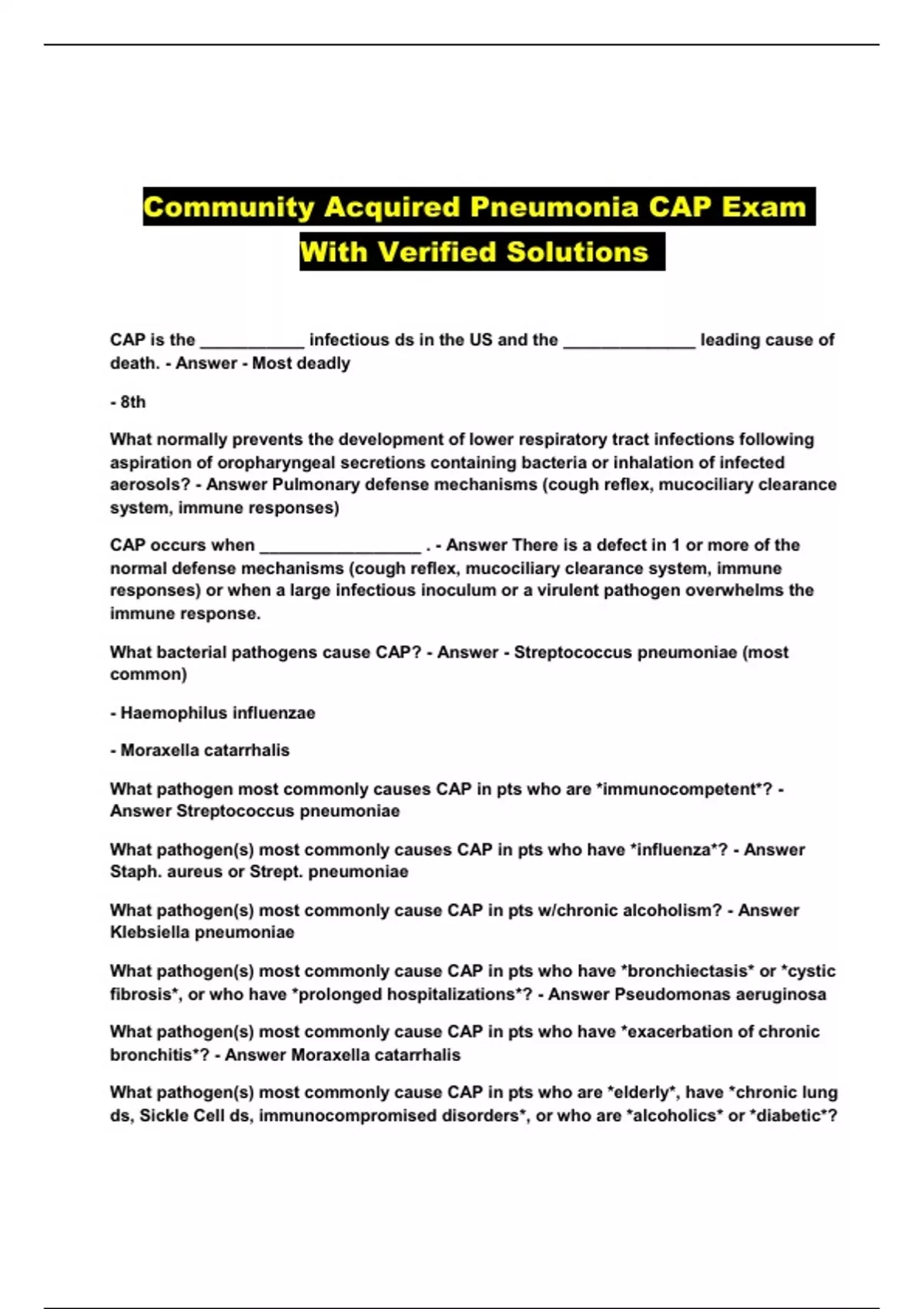 Community Acquired Pneumonia CAP Exam With Verified Solutions...