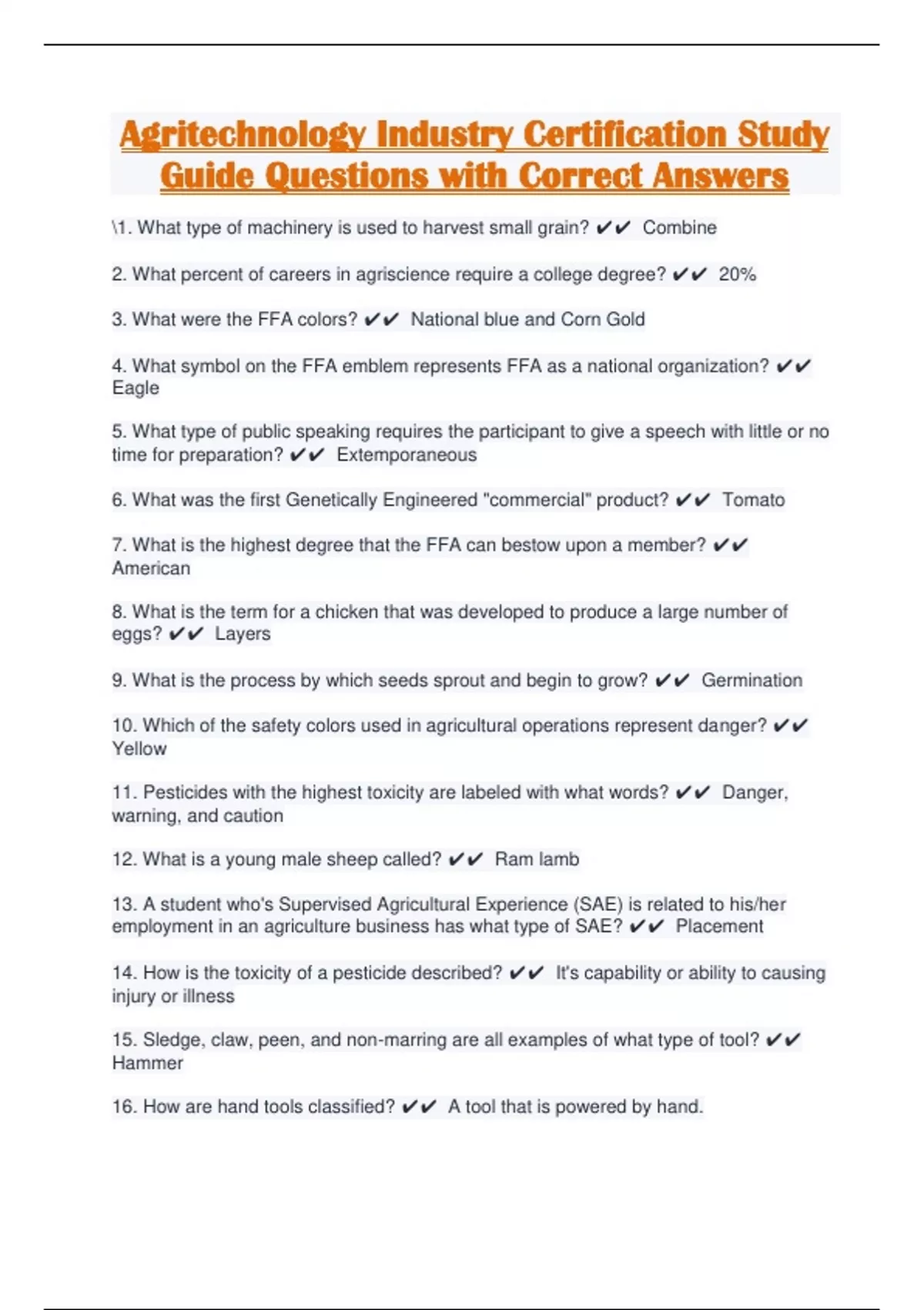 Agritechnology Industry Certification Study Guide Questions with Correct Answers