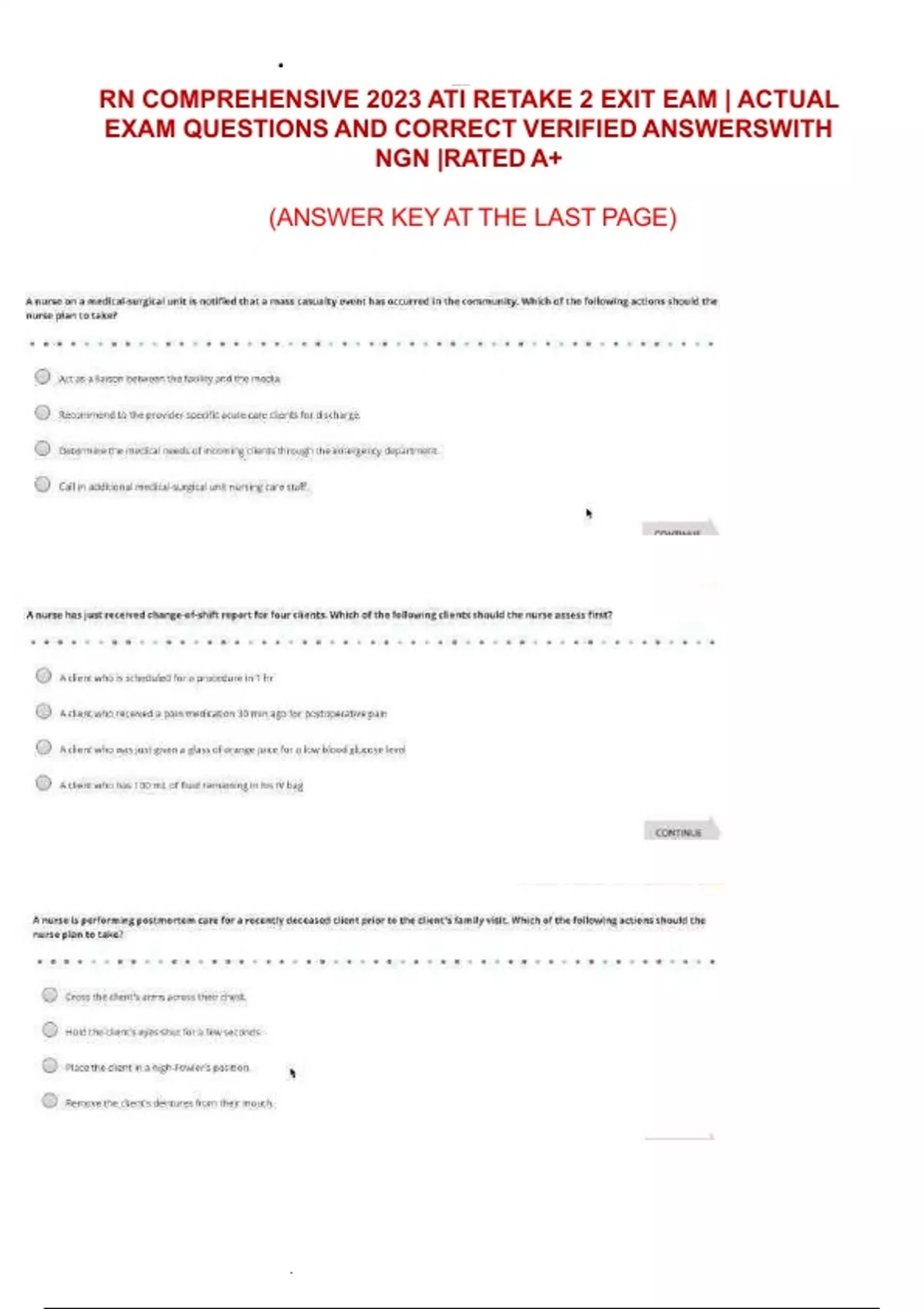 RN COMPREHENSIVE 2023 ATI RETAKE 2 EXIT EXAMS WITH NGN