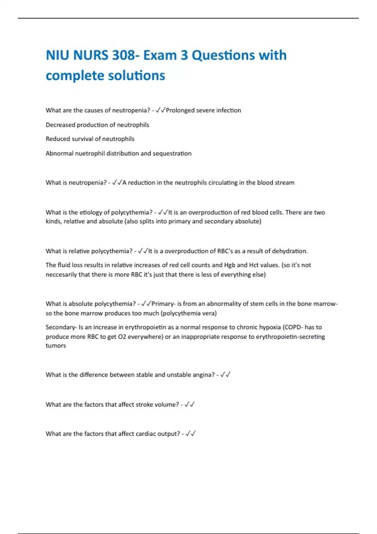 NIU NURS 308- Exam 3 Questions with complete solutions