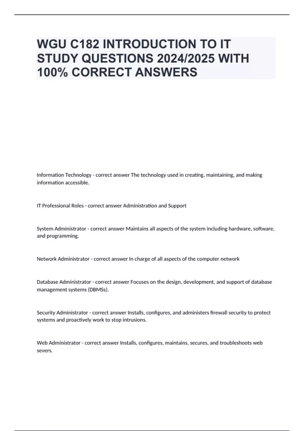 Ace Your Exams with Our Comprehensive Exam Documents and Answers! Struggling with exam preparation? Look no further! Our expertly crafted exam documents come complete with accurate answers, helping you study efficiently and effectively. Each document is designed to cover key topics, provide clear explanations, and offer insightful answers to typical exam questions. Perfect for students aiming to excel, our materials are regularly updated to align with the latest curriculum standards. **Why Choose Us?** - Accurate and Reliable: Verified answers you can trust. - Comprehensive Coverage: Detailed documents covering all major topics. - Time-Saving: Study smarter, not harder. - User-Friendly Format: Easy to navigate and understand. Achieve academic success with our top-notch study aids. Get started today and ace your exams with confidence! Feel free to modify it to better fit your specific offerings!
