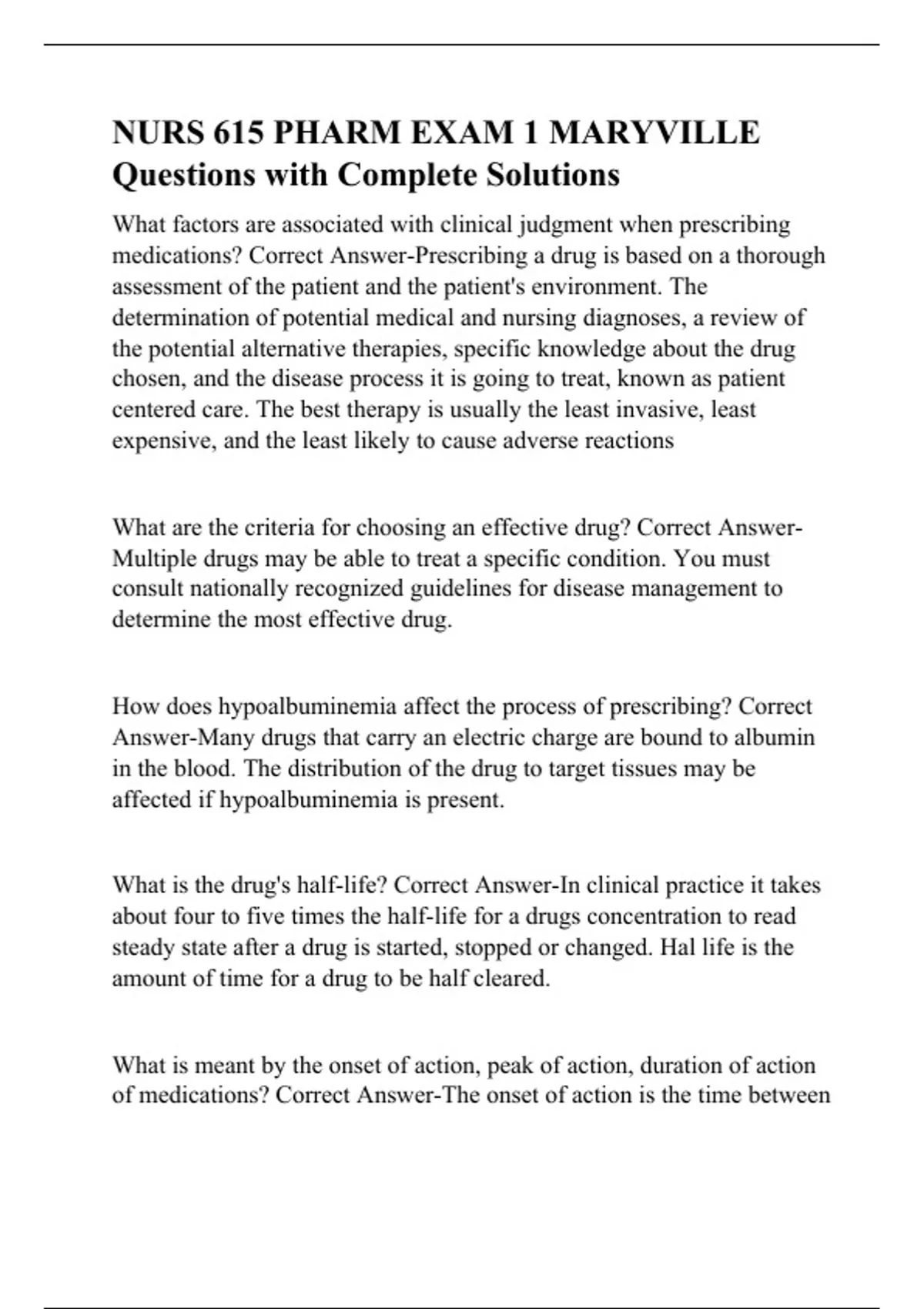 nurs 615 pharm exam 1 maryville questions with com