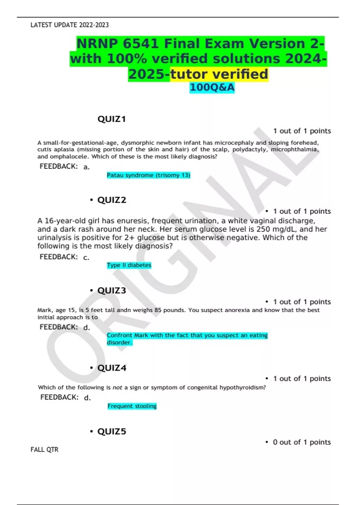 NRNP 6541 Final Exam Version 2-with 100% verified solutions -tutor