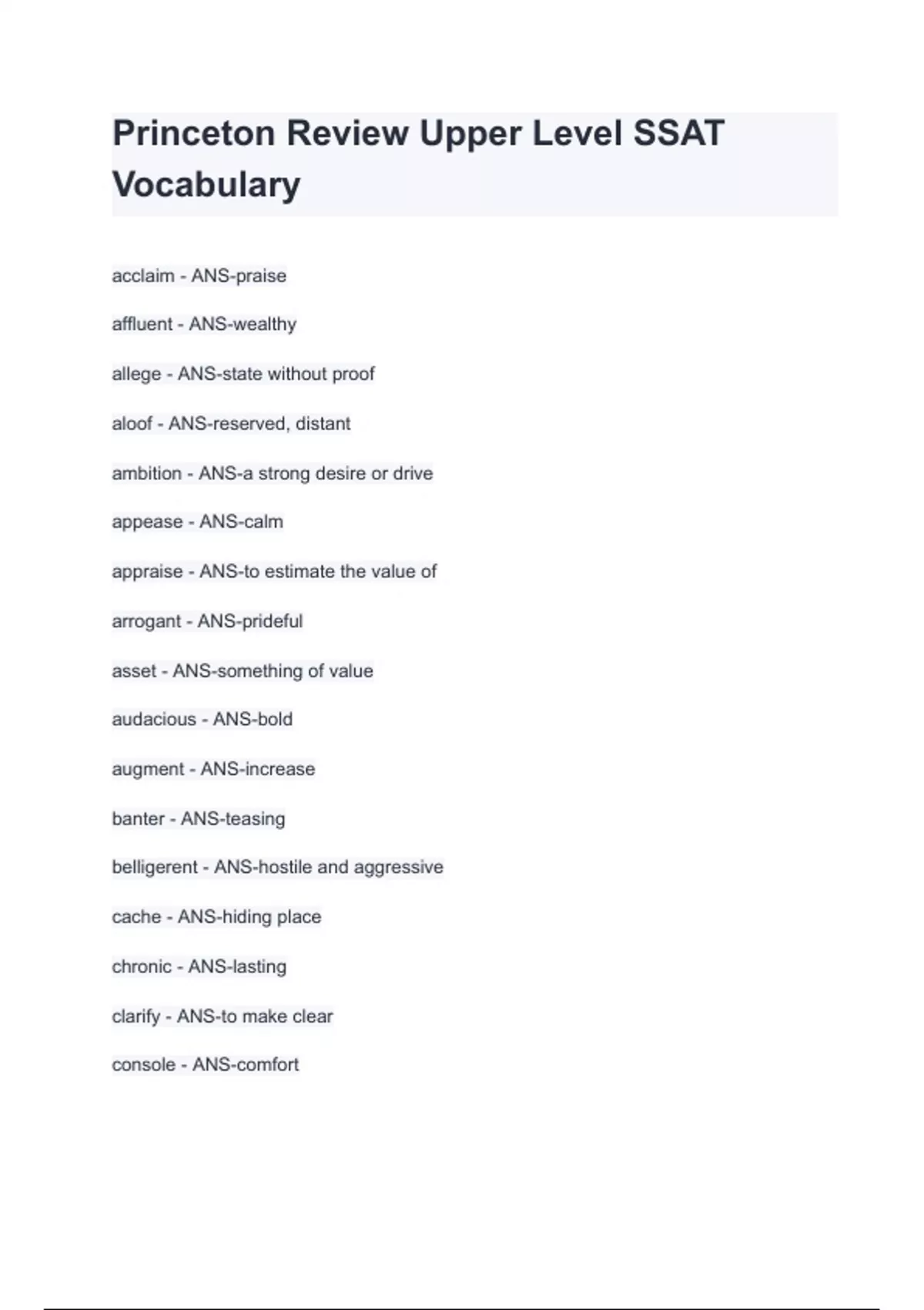 princeton review upper level ssat vocabulary