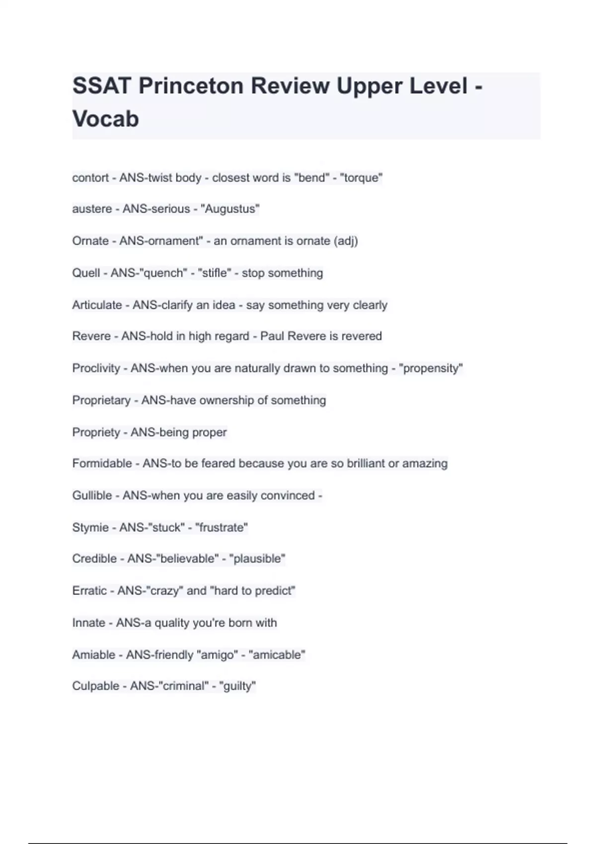SSAT Princeton Review Upper Level - Vocab.