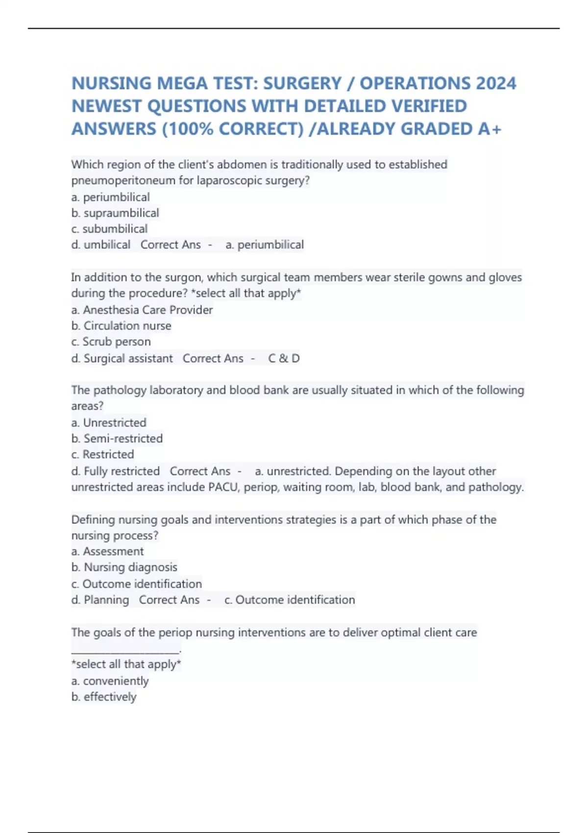 NURSING MEGA TEST SURGERY OPERATIONS 2024 NEWEST QUESTIONS WITH DETAILED VERIFIED ANSWERS (100% CORRECT) ALREADY GRADED A+