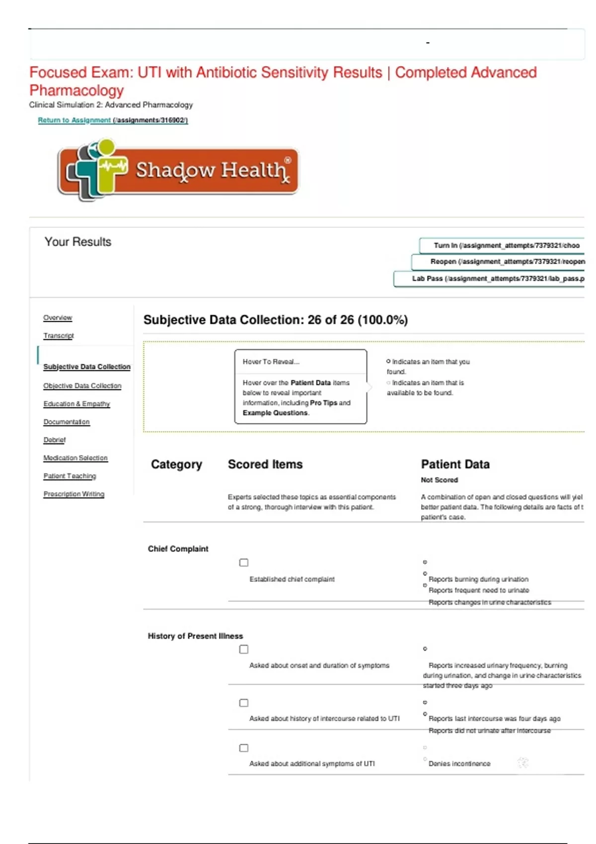 Focused Exam: UTI with Antibiotic Sensitivity Results | Completed Advanced Pharmacology