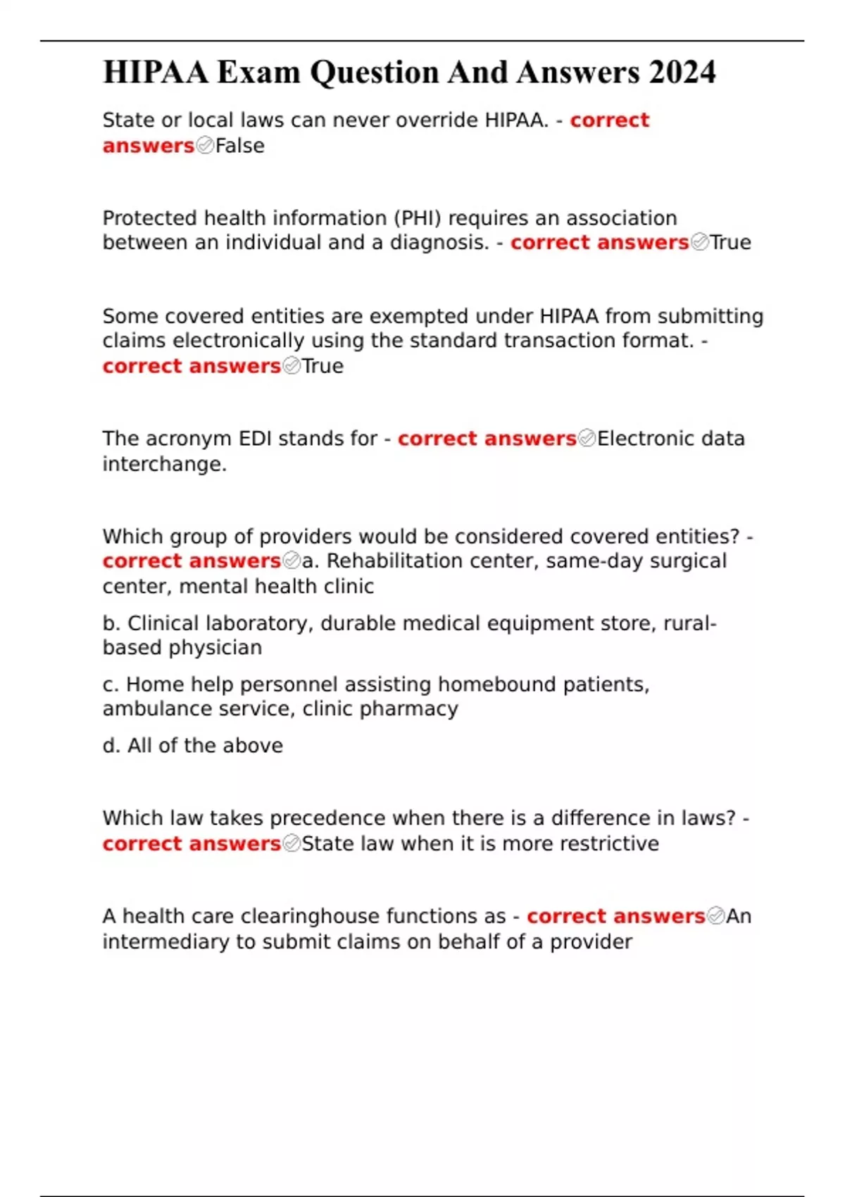 HIPAA Exam Question And Answers 2024