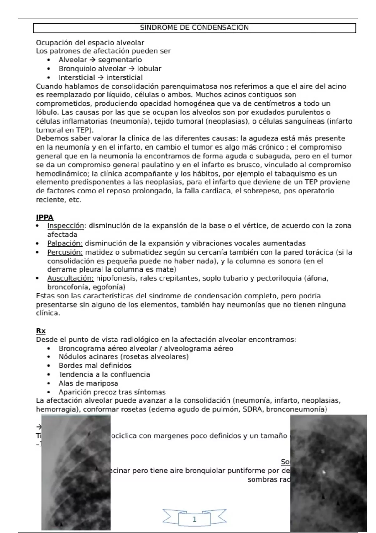 La afectación alveolar puede avanzar a la consolidación (neumonía, infarto, neoplasias,
