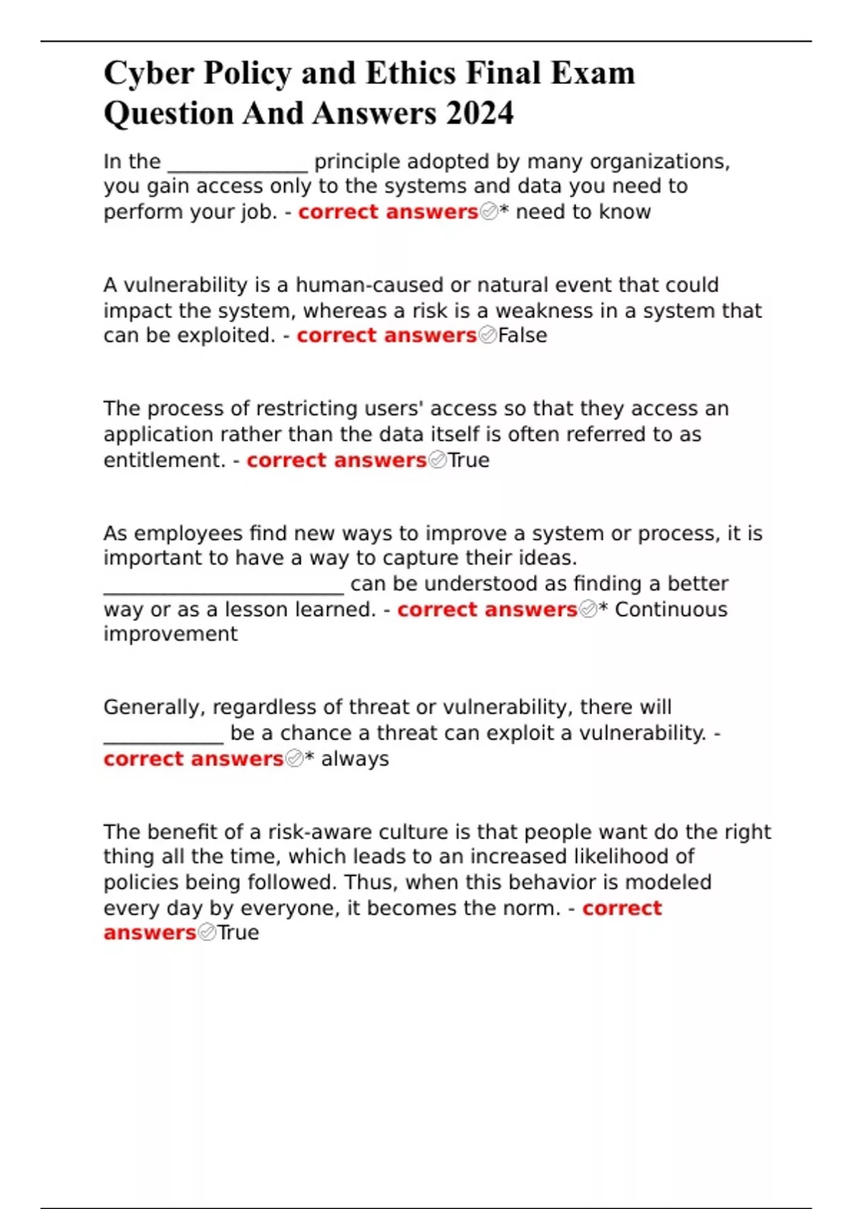 Cyber Policy and Ethics Final Exam Question And Answers 2024