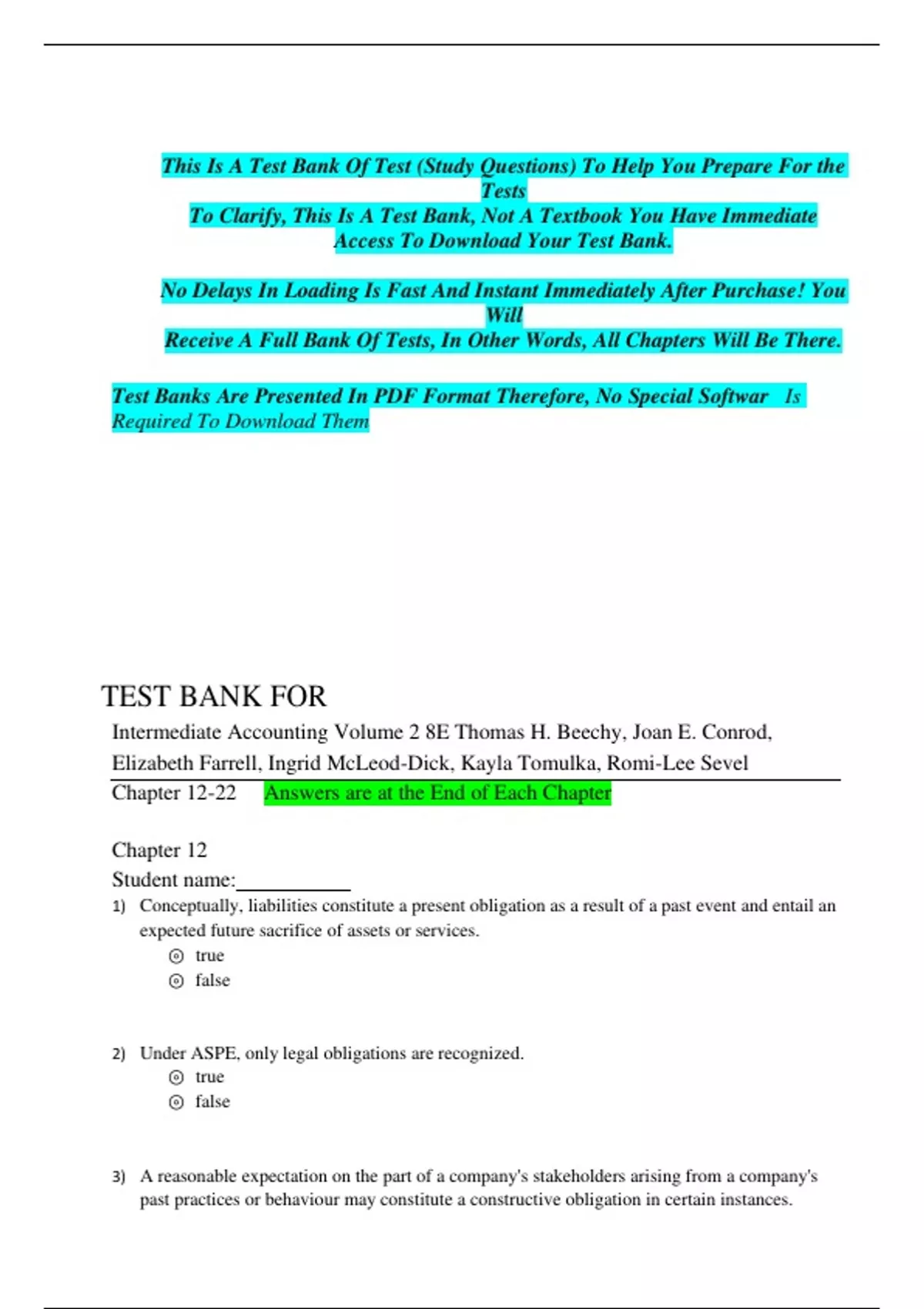 Solution Manual for Intermediate Accounting (Volume 2), 8th Canadian Edition By Thomas H. Beechy, Joan E. Conrod, Verified Chapters 12 - 22, Complete Newest Version