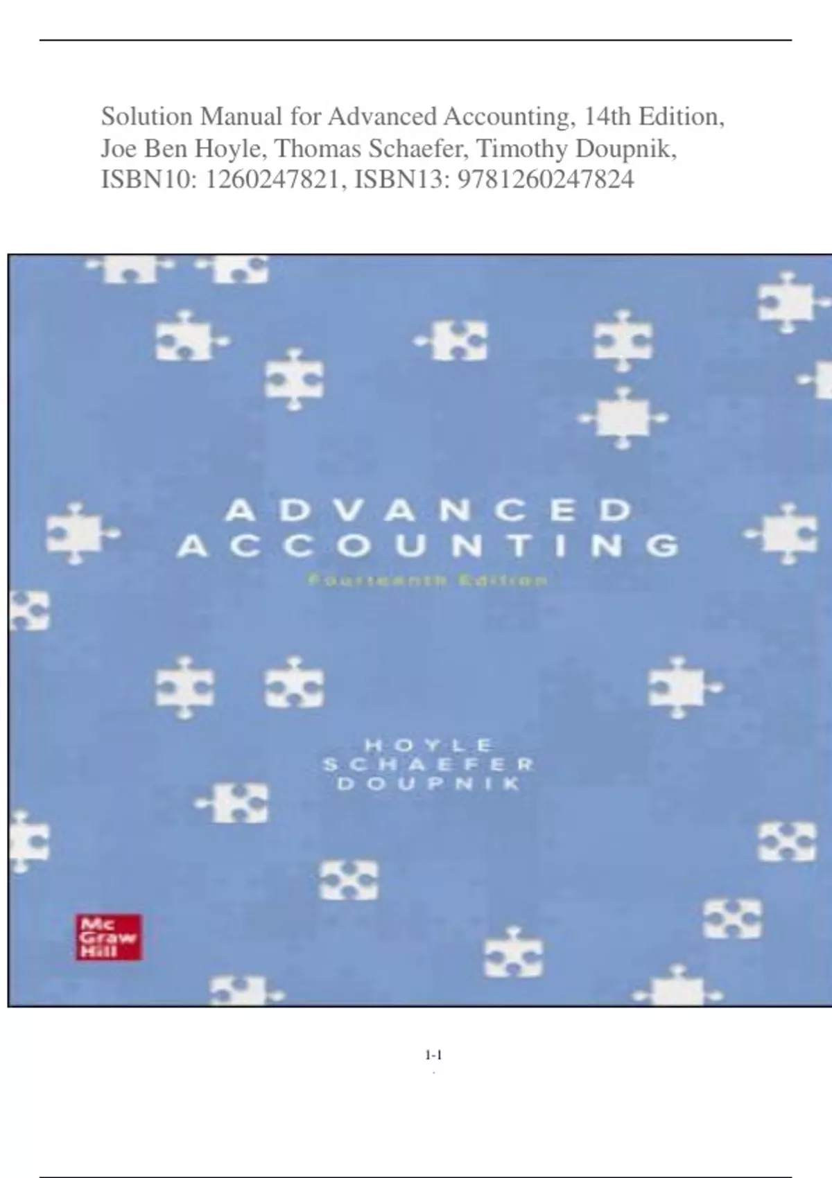 Solution Manual for Advanced Accounting 14th Edition by Joe Ben Hoyle, Thomas Schaefer, Timothy Doupnik | A+
