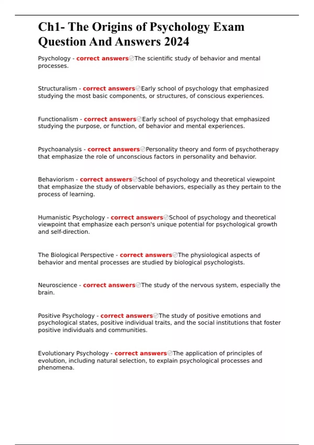 Ch1- The Origins of Psychology Exam Question And Answers 2024