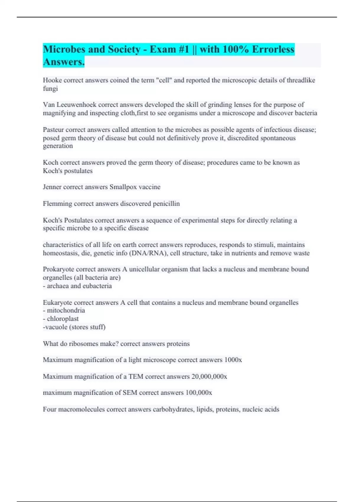 Microbes and Society - Exam #1 || with 100% Errorless Answers.