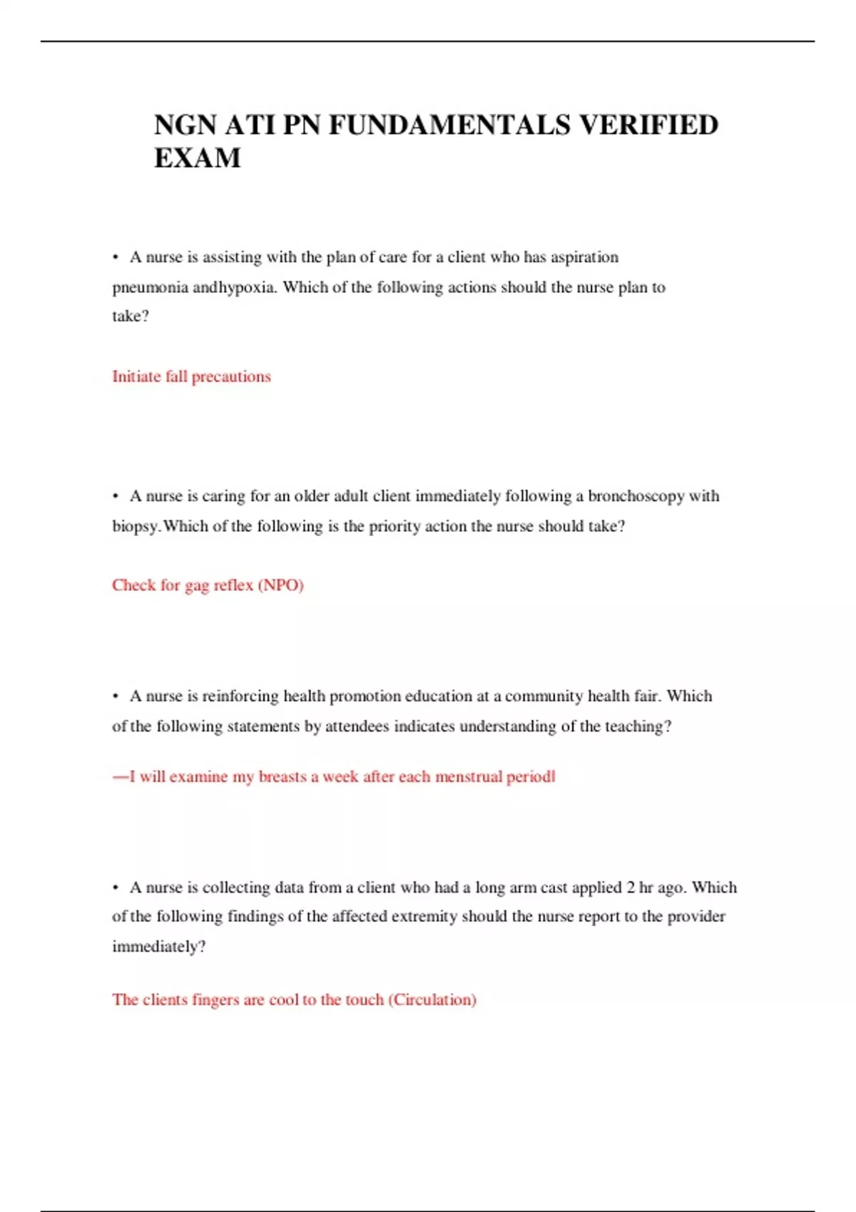 NGN ATI PN FUNDAMENTALS VERIFIED EXAM