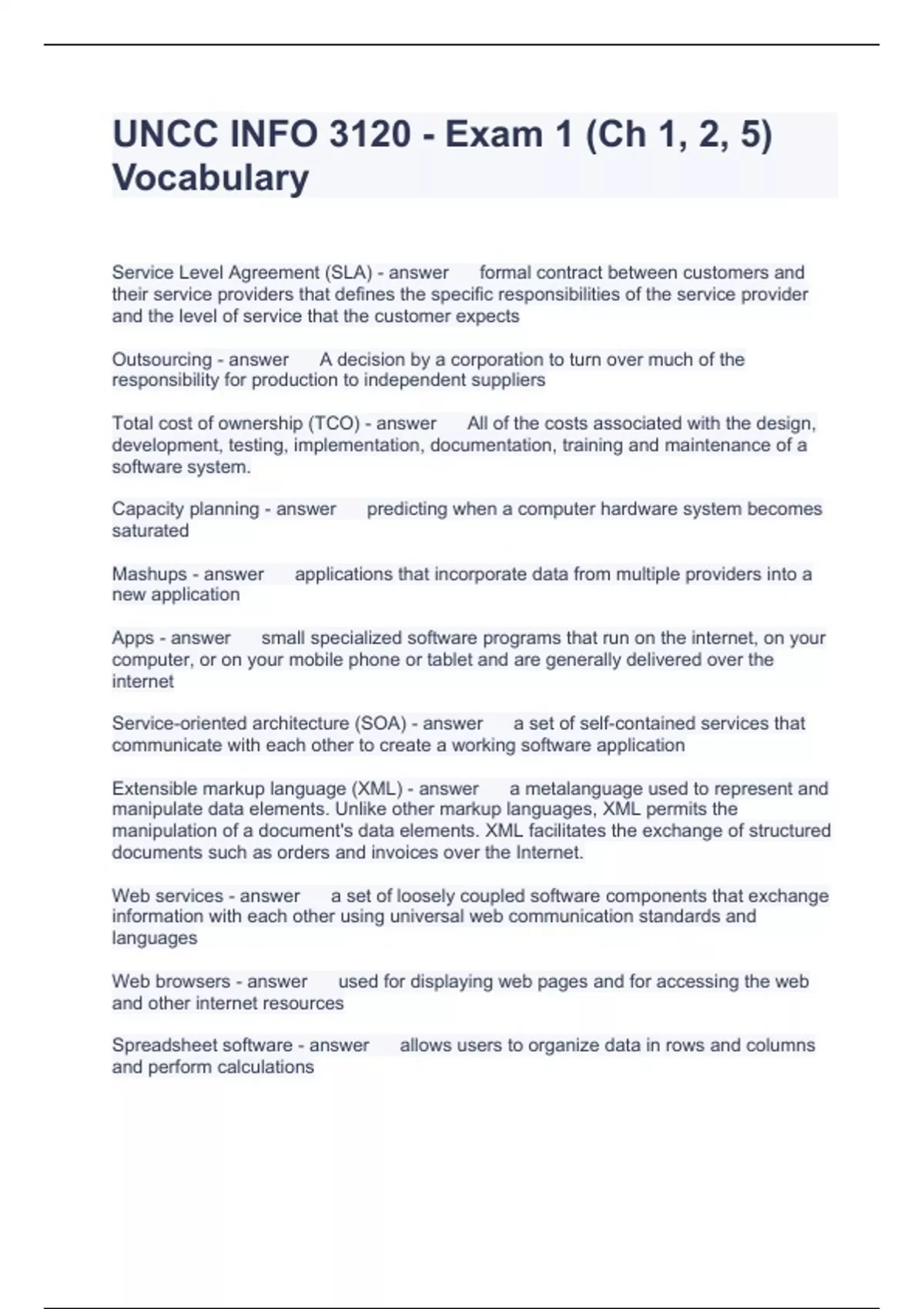 UNCC INFO 3120 - Exam 1 (Ch 1, 2, 5) Vocabulary Questions and Answers 100% correct
