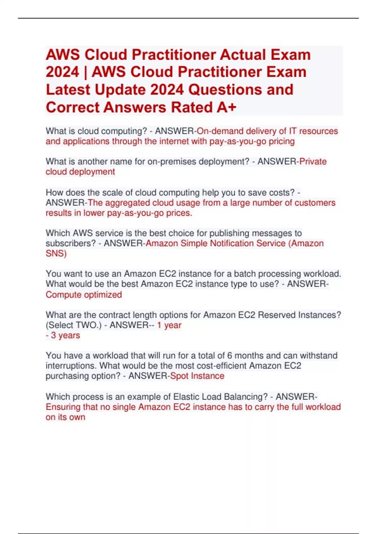 AWS Cloud Practitioner Actual Exam 2024 | AWS Cloud Practitioner Exam Latest Update 2024 Questions and Correct Answers Rated A+