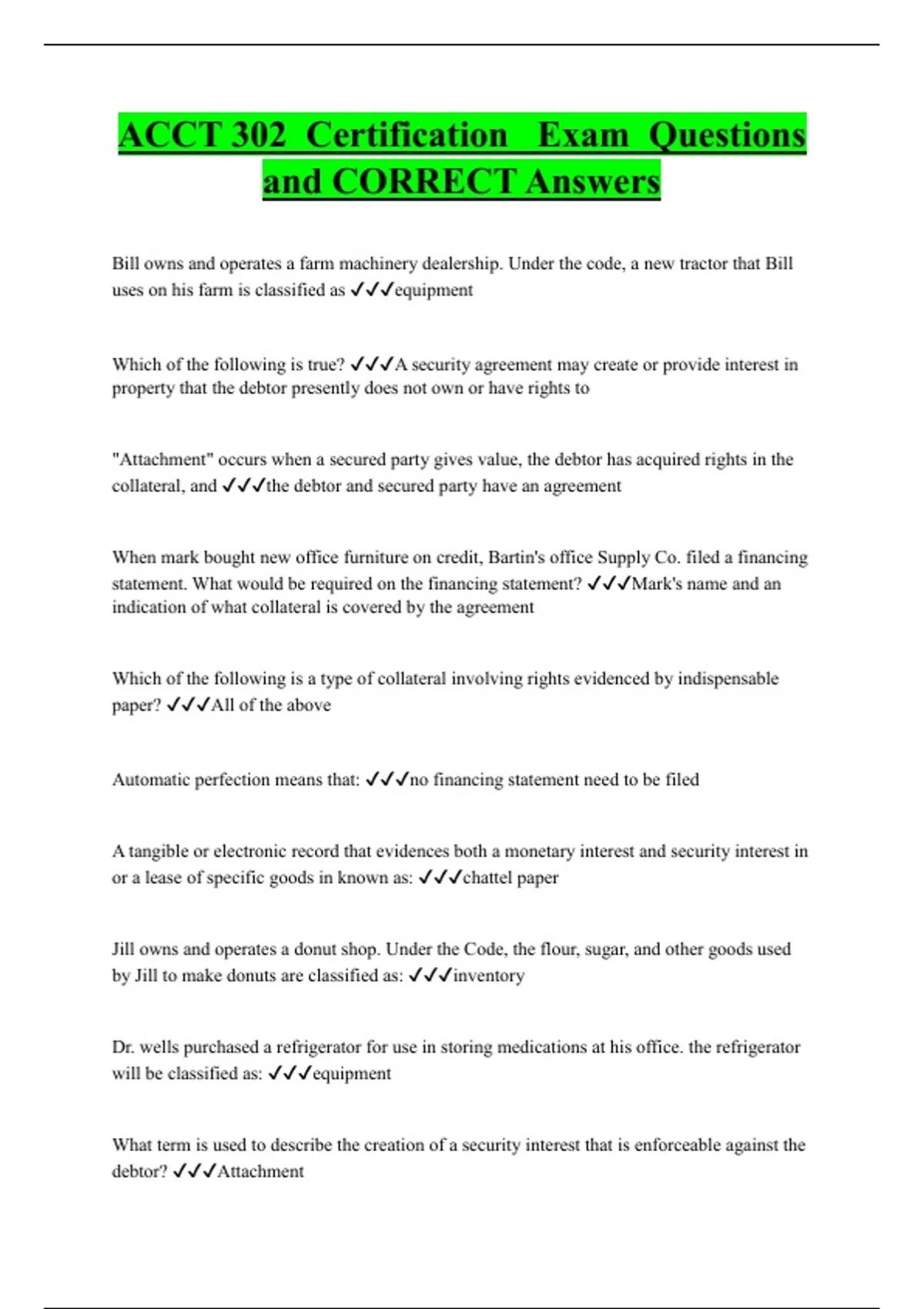 ACCT 302 Certification Exam Questions and CORRECT Answers