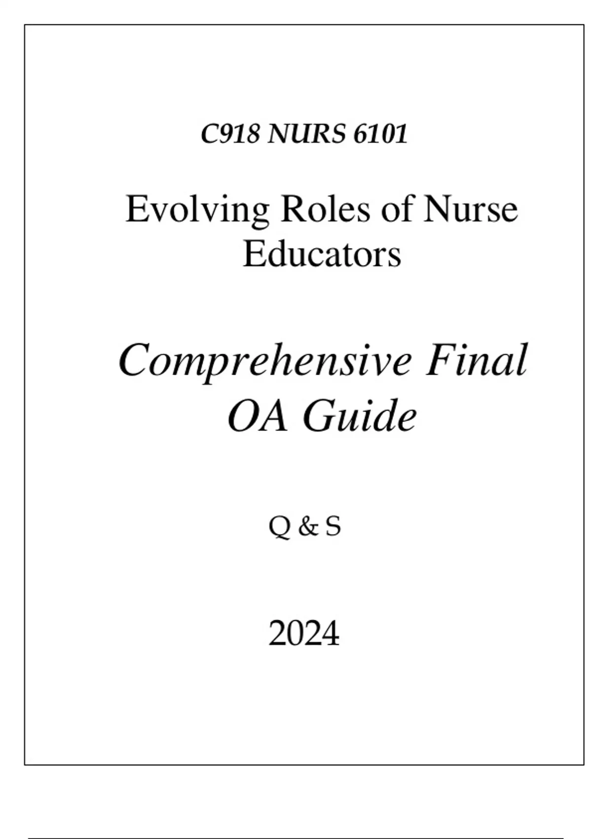 (WGU C918) NURS 6101 EVOLVING ROLES OF (WGU C918) NURS 6101 EVOLVING ROLES OF NURSE EDUCATORS COMPREHENSIVE FINAL OA GUIDE(WGU C918) NURS 6101 EVOLVING ROLES OF NURSE EDUCATORS COMPREHENSIVE FINAL OA GUIDENURSE EDUCATORS COMPREHENSIVE FINAL OA GUIDE