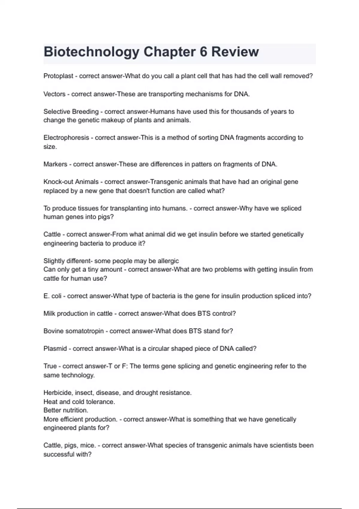 Biotechnology Chapter 6 Review with complete solution