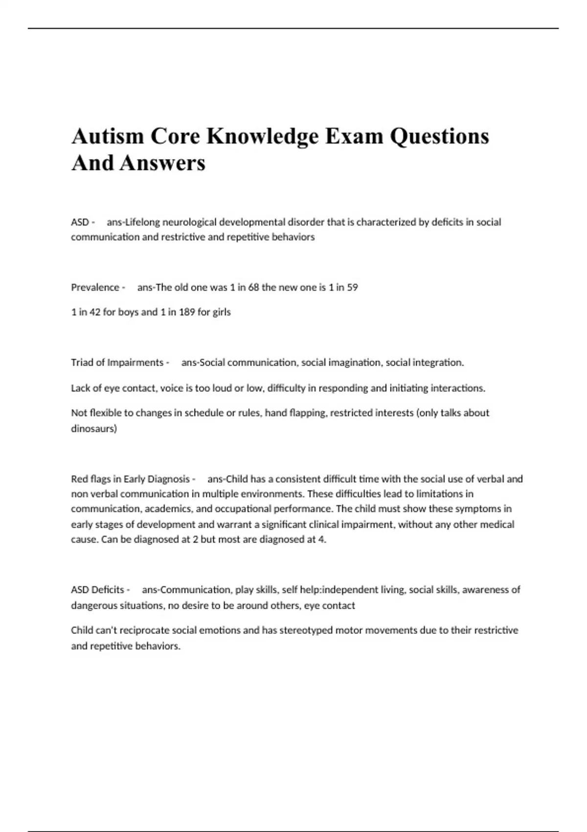 Autism Core Knowledge Exam Questions And Answers
