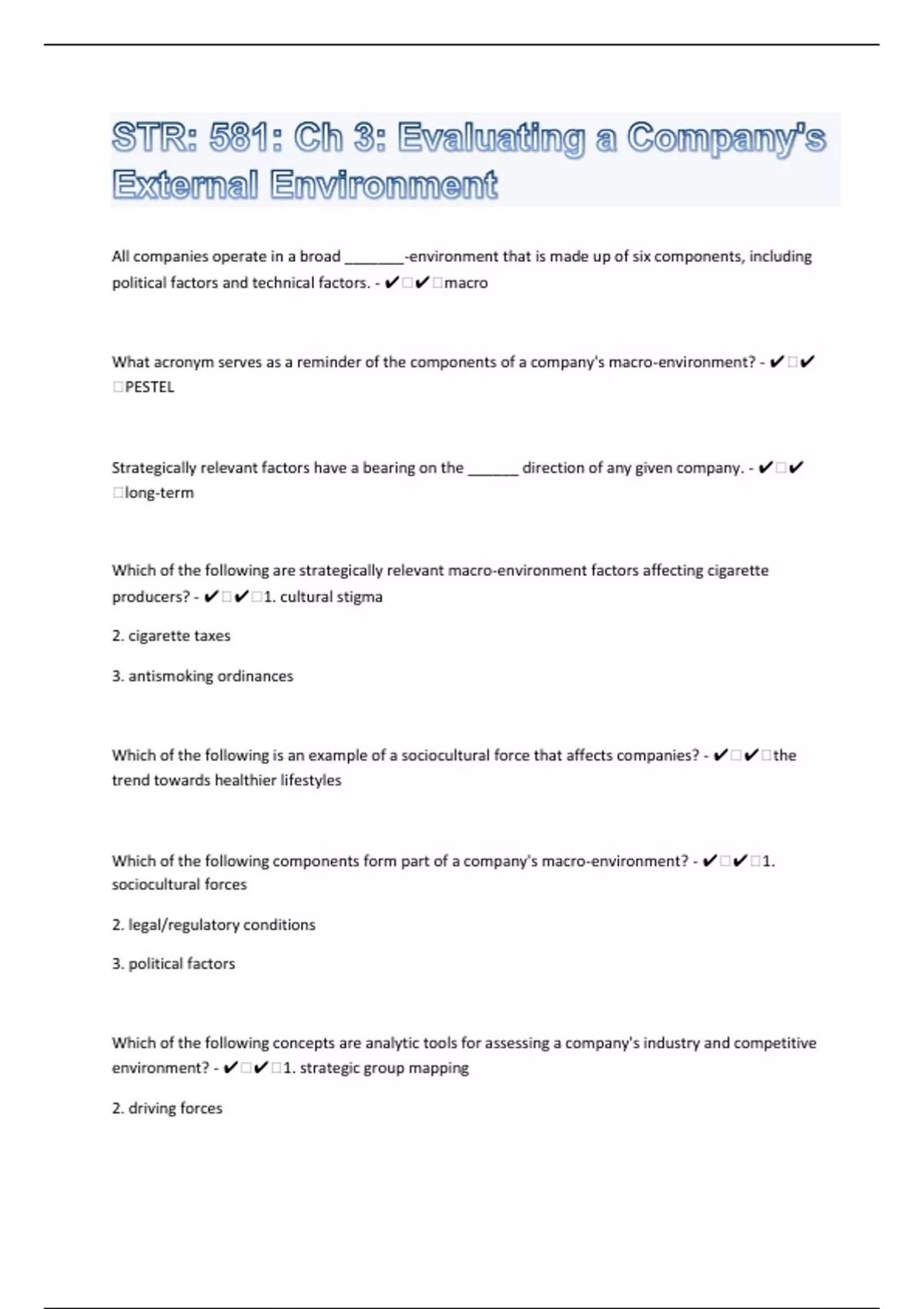STR: 581: Ch 3: Evaluating a Company's External Environment 108 Questions with 100% Correct Answers | Verified | Latest Update