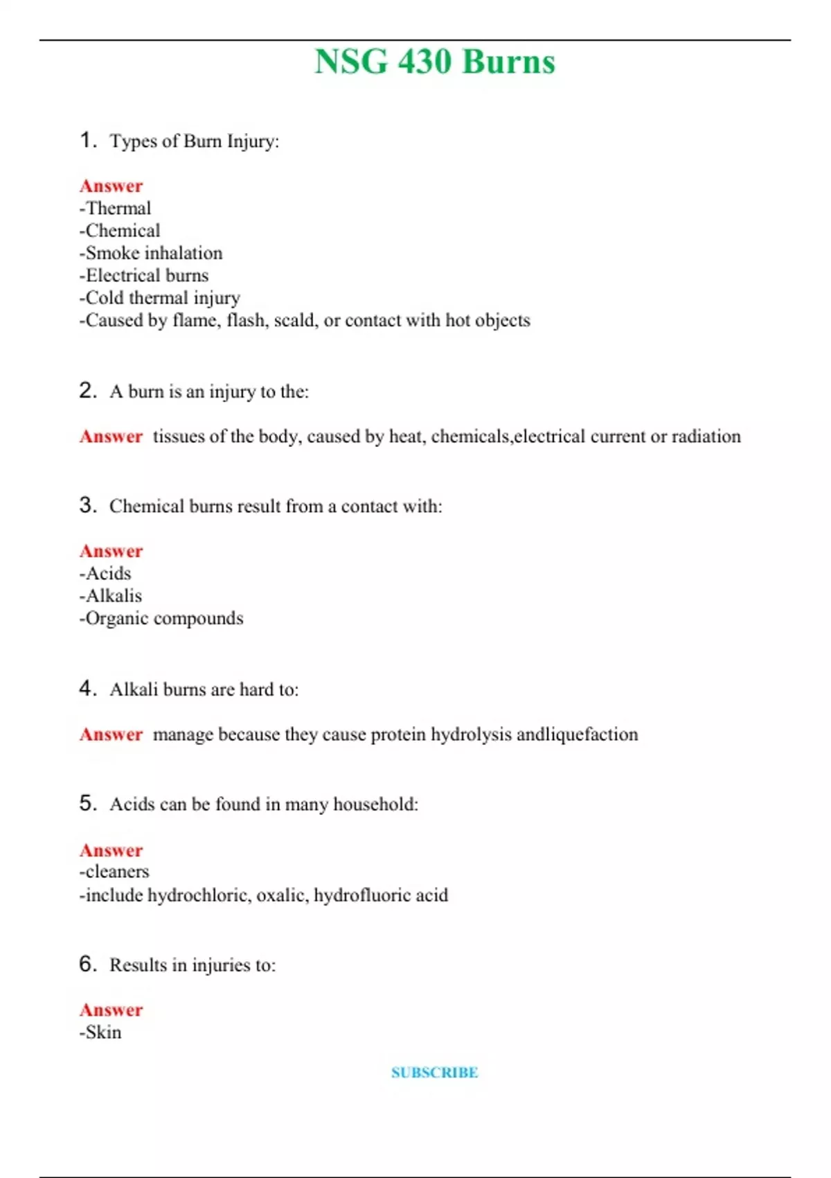 NSG 430 Burns (Latest 2024 / 2025) Questions & Answers with rationales