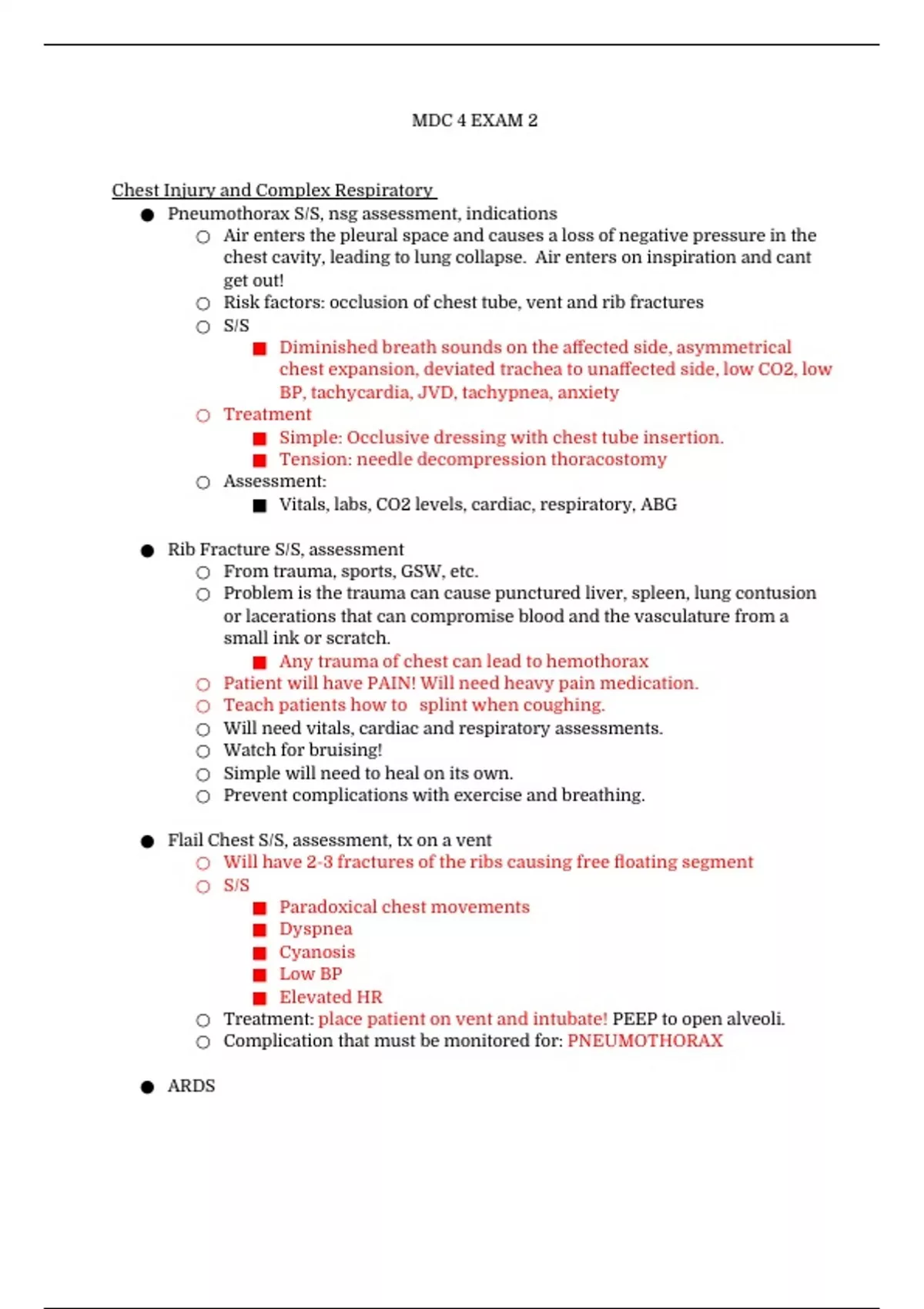NUR2755 Multidimensional Care IV / MDC 4 Exam 2 Study Guide