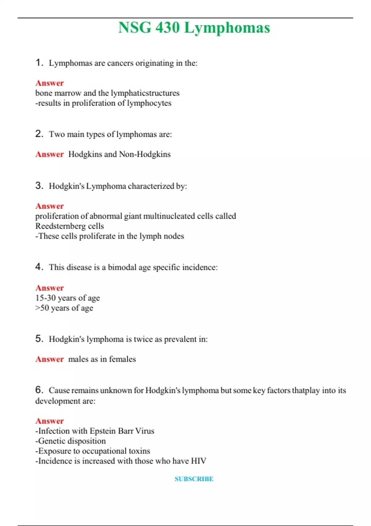 NSG 430 Lymphomas (Latest 2024 / 2025) Questions & Answers with rationales