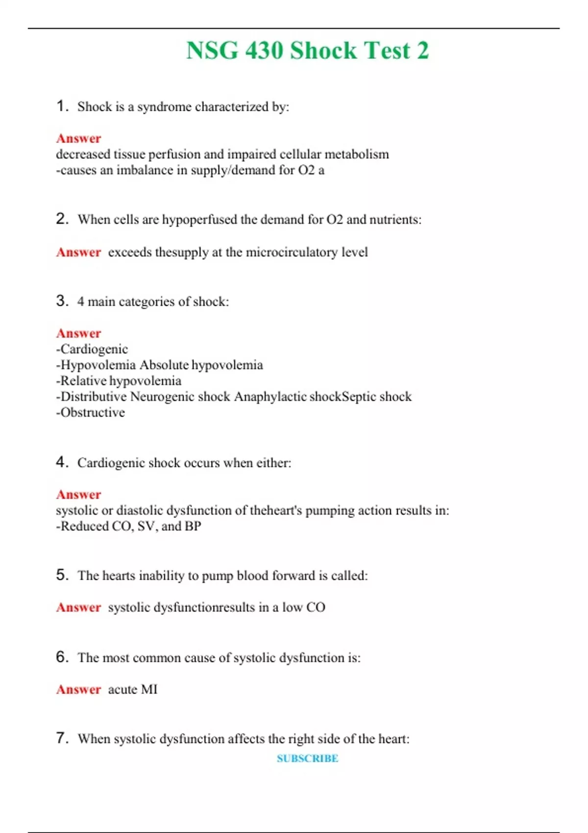 NSG 430 Shock Test 2 (Latest 2024 / 2025) Questions & Answers with rationales