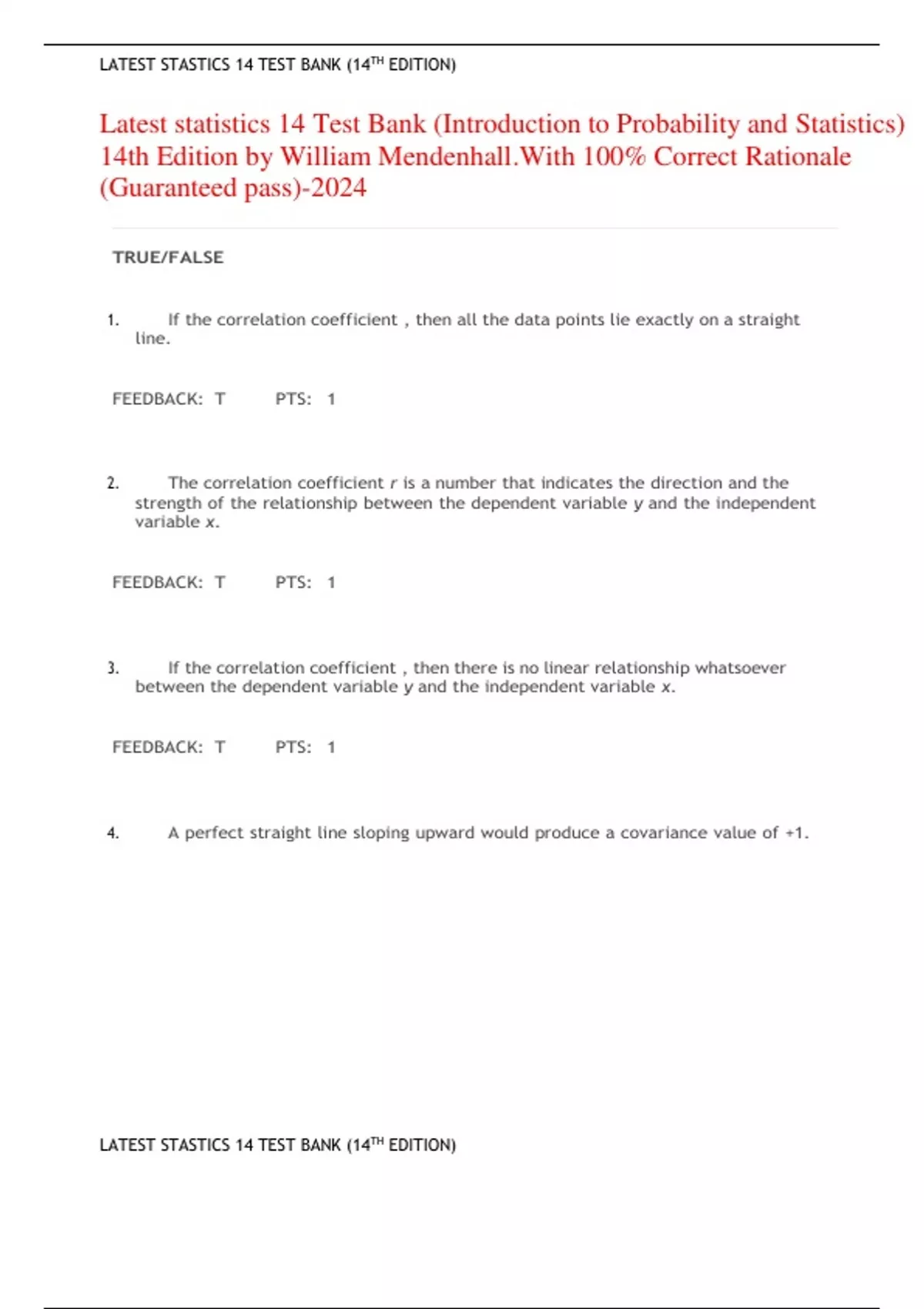 Latest statistics 14 Test Bank (Introduction to Probability and Statistics) 14th Edition by William Mendenhall.With 100% Correct Rationale (Guaranteed pass)-2024