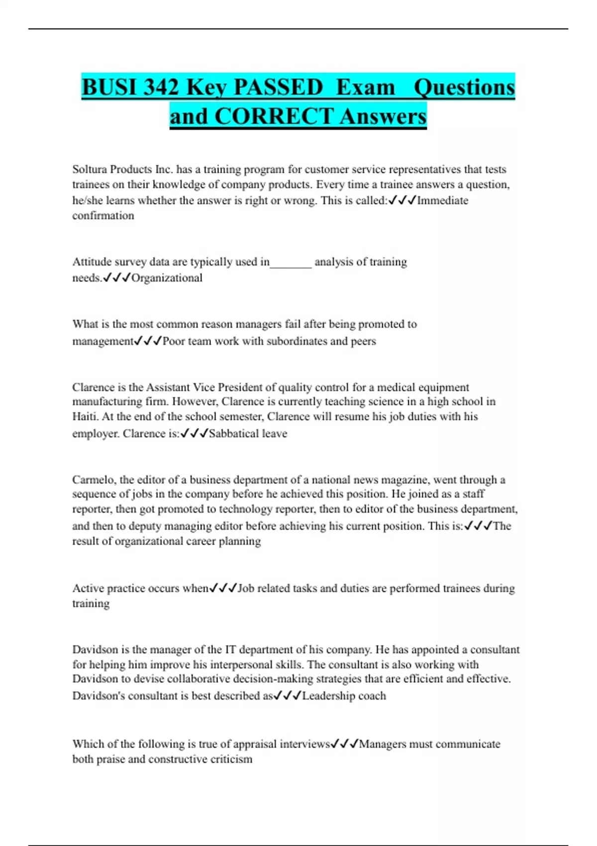 BUSI 342 Key PASSED Exam Questions and CORRECT Answers
