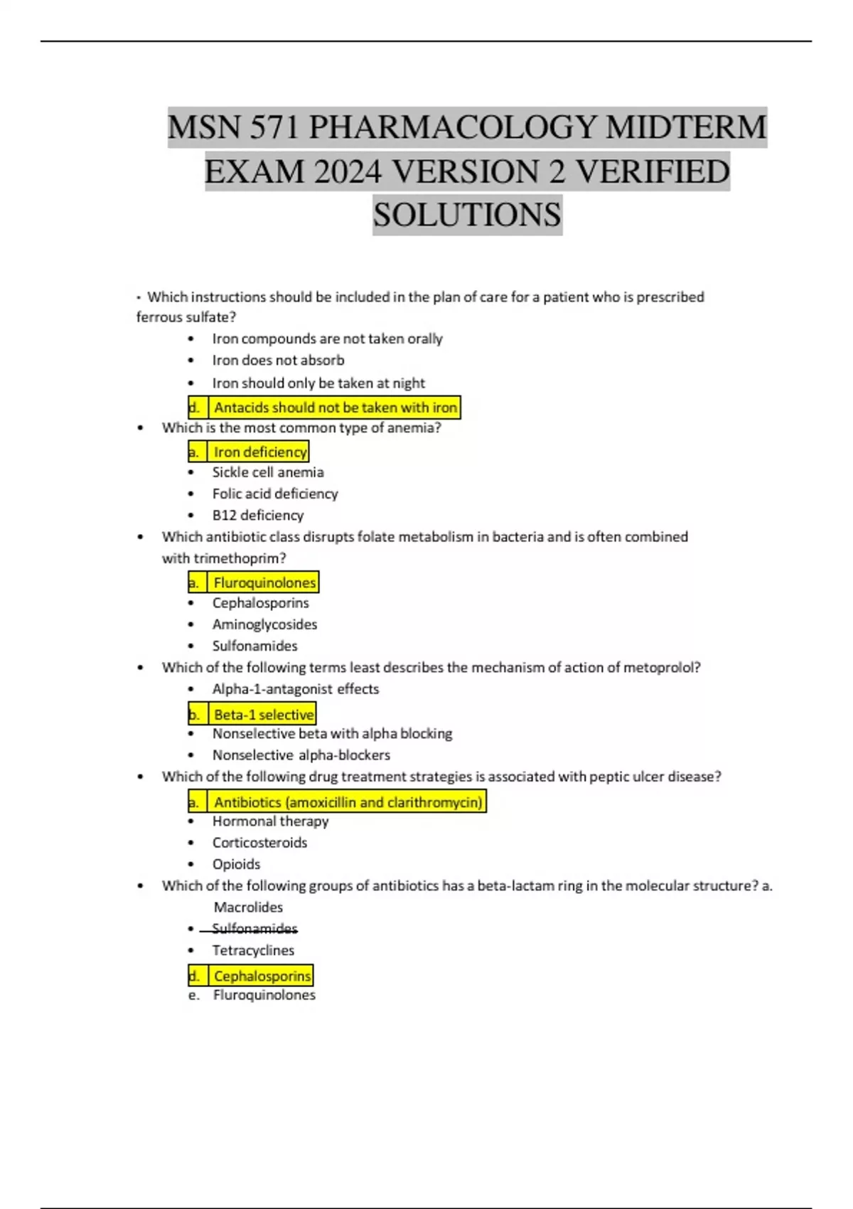 MSN 571 PHARMACOLOGY MIDTERM EXAM 2024 VERSION 2 VERIFIED SOLUTIONS
