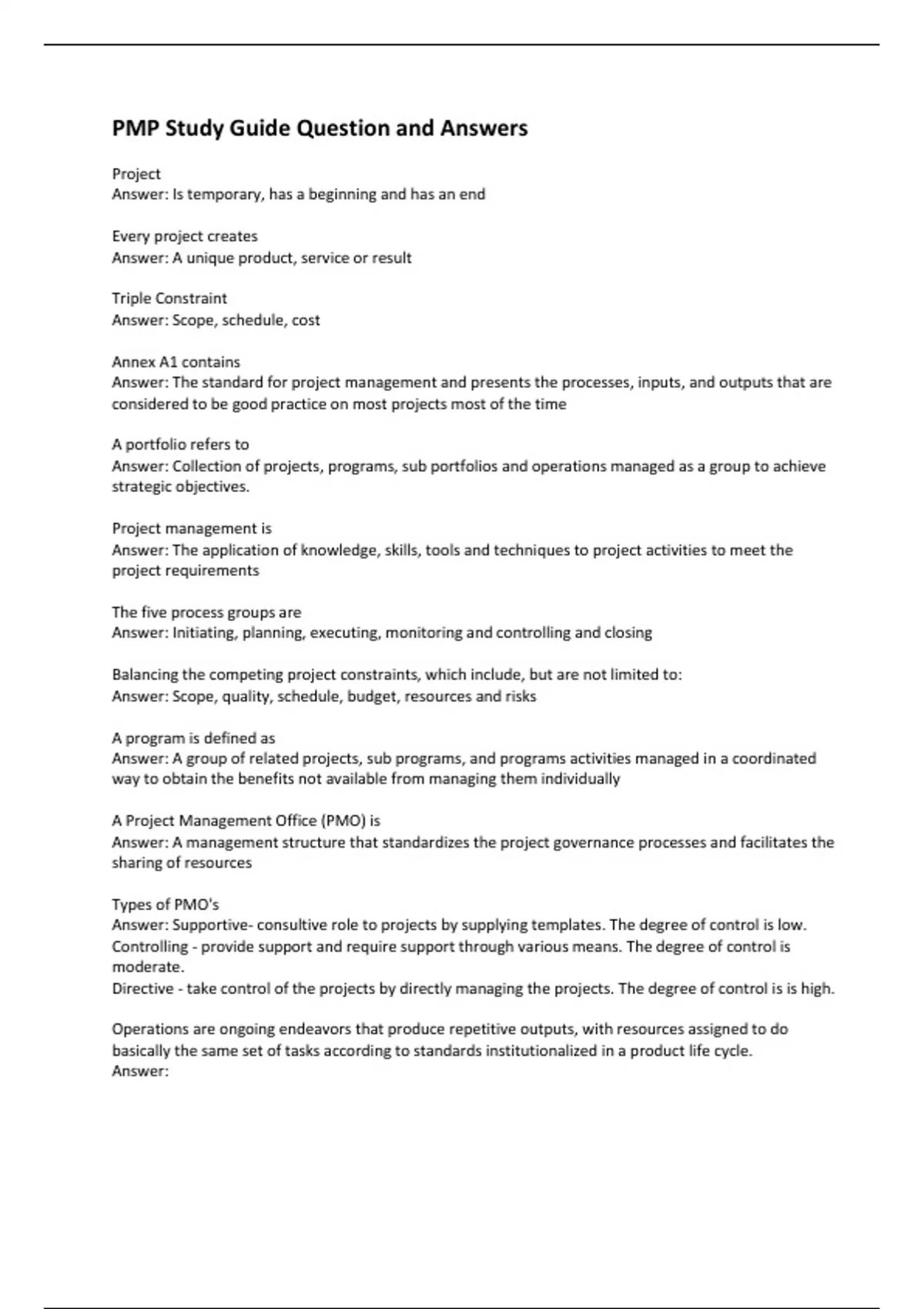 pmp exam study guide question and answer