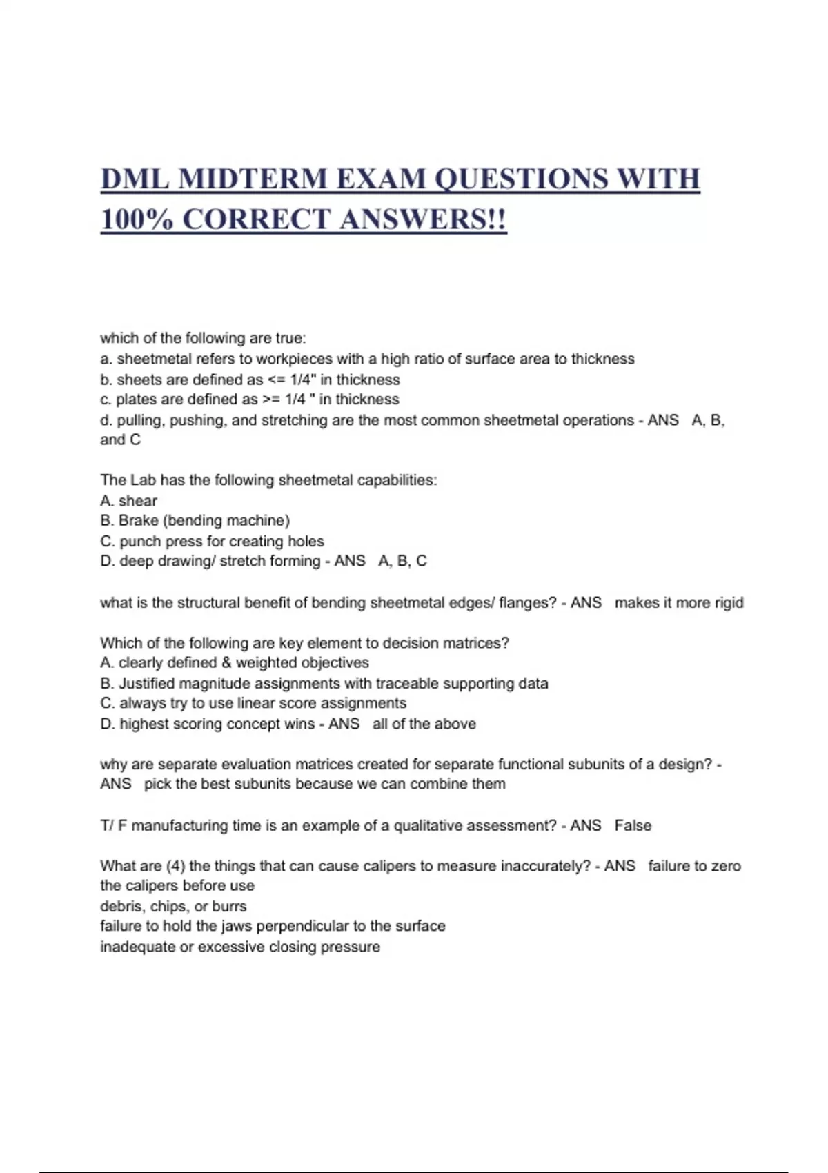 dml midterm exam questions with 100 correct answe