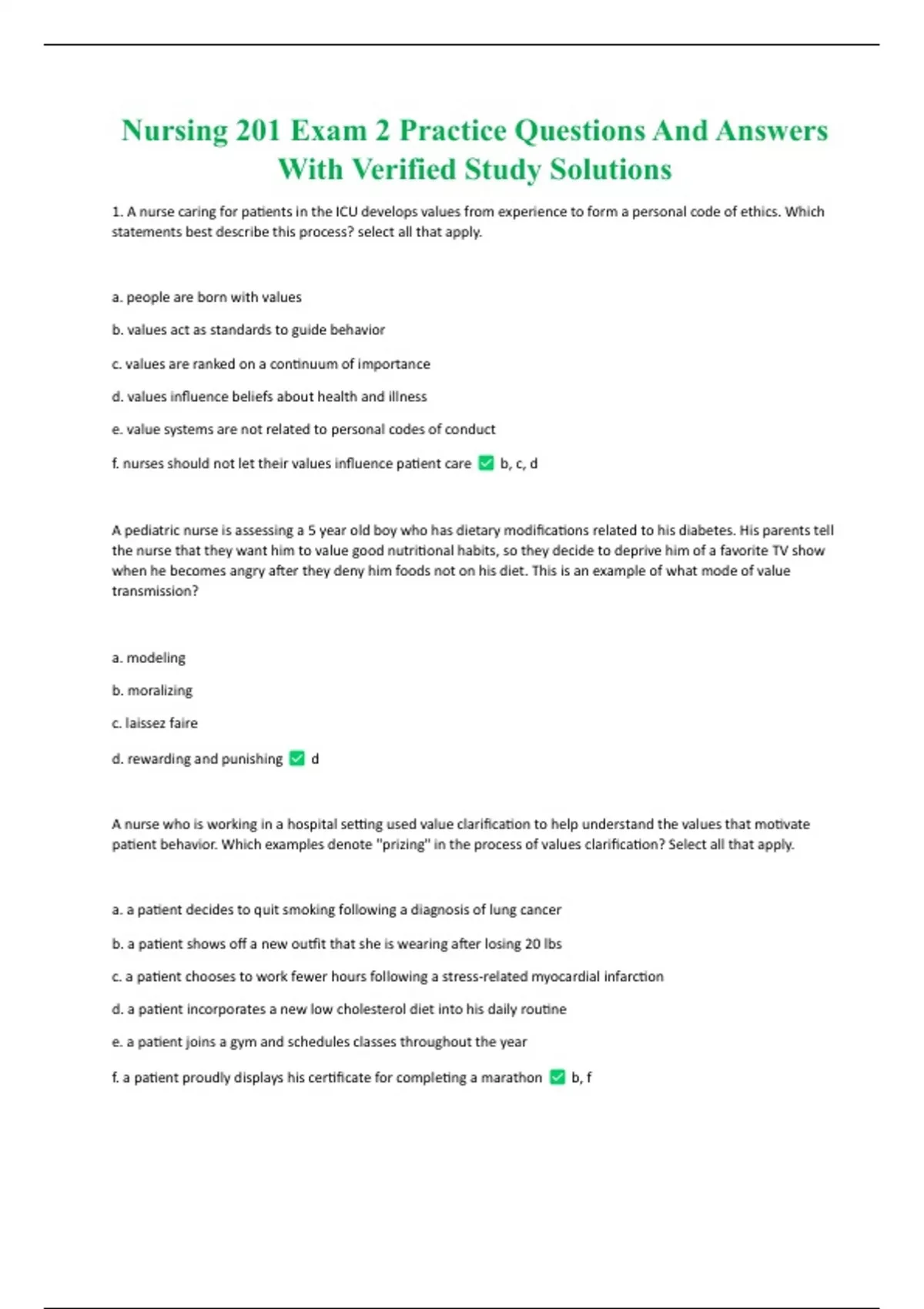 Nursing 201 Exam 2 Practice Questions And Answers With Verified Study Solutions Nursing 201 Exam 2 Practice Questions And Answers With Verified Study Solutions