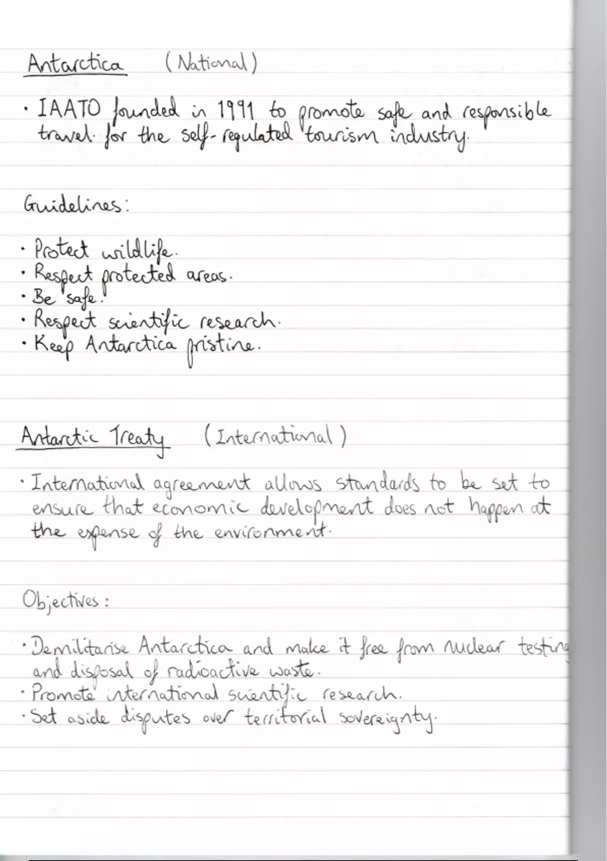 All case study information (including facts and figures) for Antarctica, featuring national (IAATO) and international (Antarctic Treaty) management. Can be used for any exam board.